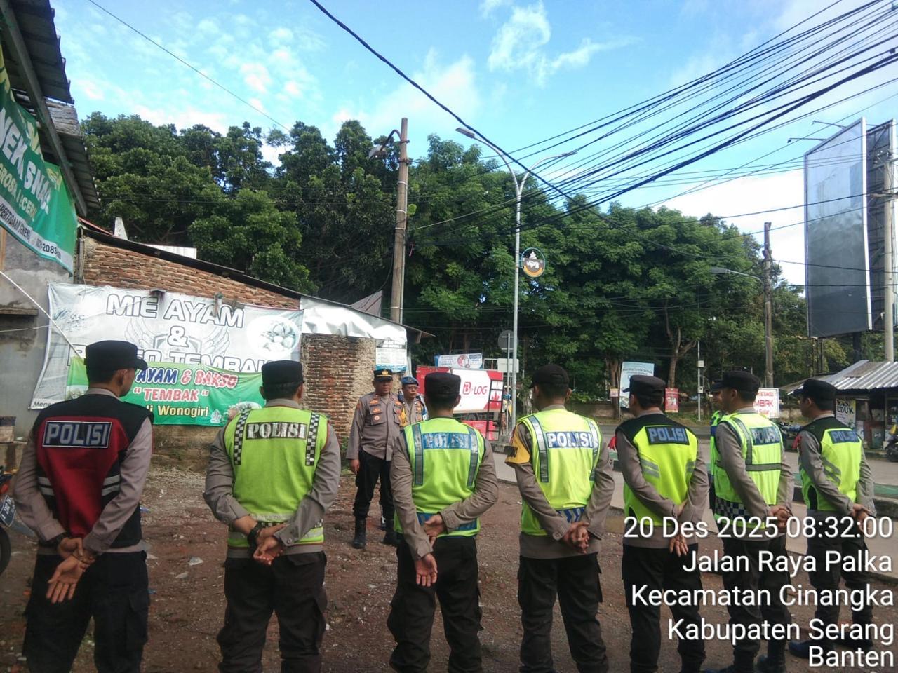*POLRES CILEGON* Polda Banten. Menjaga kegiatan dan memastikan Aman Polsek Cinangka Polres Cilegon terjunkan Petugas menjaga pengamanan kegiatan PAM Natal dan tahun baru di Pospam Cinangka Kecamatan Cinangka. Sabtu (20/12/2025).