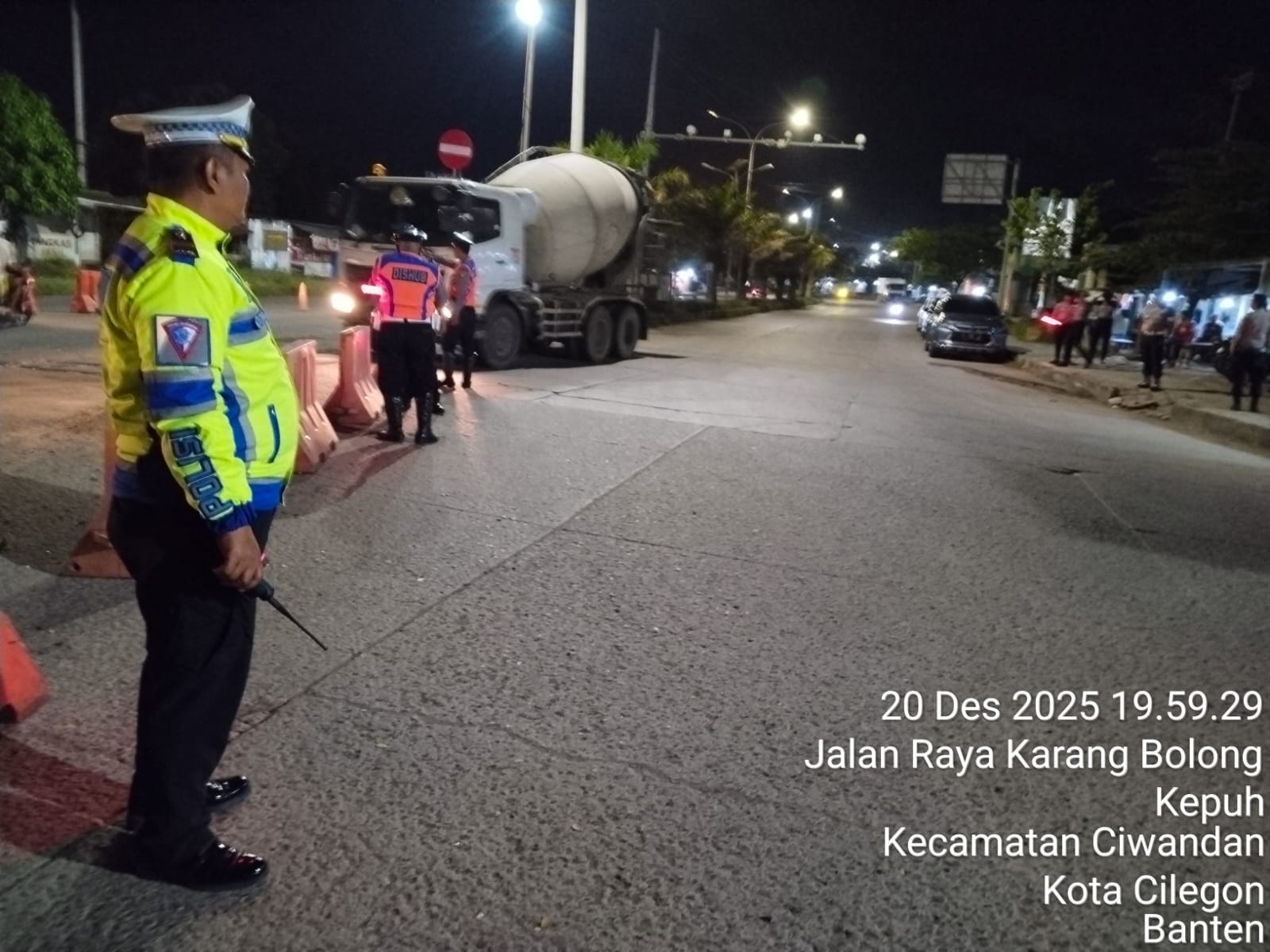 Cilegon - Guna Menciptakan kelancaran arus Mudik tahun 2025 yang menuju Pelabuhan Pelindo Dan jalur wisata yang ada di daerah hukum Polsek Ciwandan Polres Cilegon Polda Banten,Pospam 5 Ciwandan berlakukan rekayasa Lalu lintas, Minggu (21/12/2025).