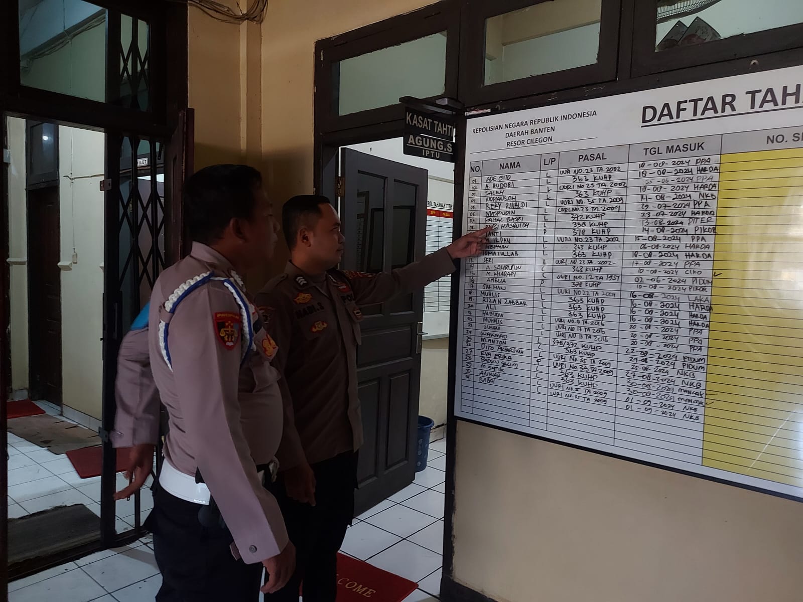 Cilegon,Polres Cilegon Polda Banten Pada Hari Selasa 23/Desember/2025 Pukul 08.10 Wib,Brigadir Hadi Sudrajat melaksanakan Pengechekan Data dan Jumlah Tahanan yang ada Di Polres Cilegon.