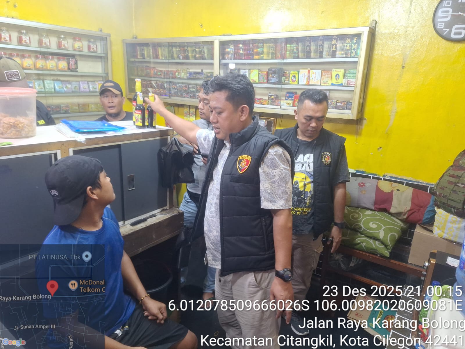 Kapolres Cilegon Polda Banten AKBP Dr. Martua Raja Taripar Laut Silitonga melalui Kapolsek Ciwandan Polres Cilegon Polda Banten KOMPOL Andi Suherman Mengatakan Pada hari Selasa tanggal 23 Desember 2025 pukul 21.30 wib Telah dilaksanakan kegiatan operasi Penyakit masyarakat (pekat) dengan sasaran minuman keras (miras) di daerah hukum Polsek Ciwandan.