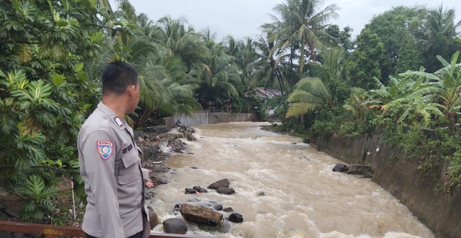 Lakukan Patroli Polsek Anyar Pantau Debit Air Sungai Wilayah Pasca Hujan
