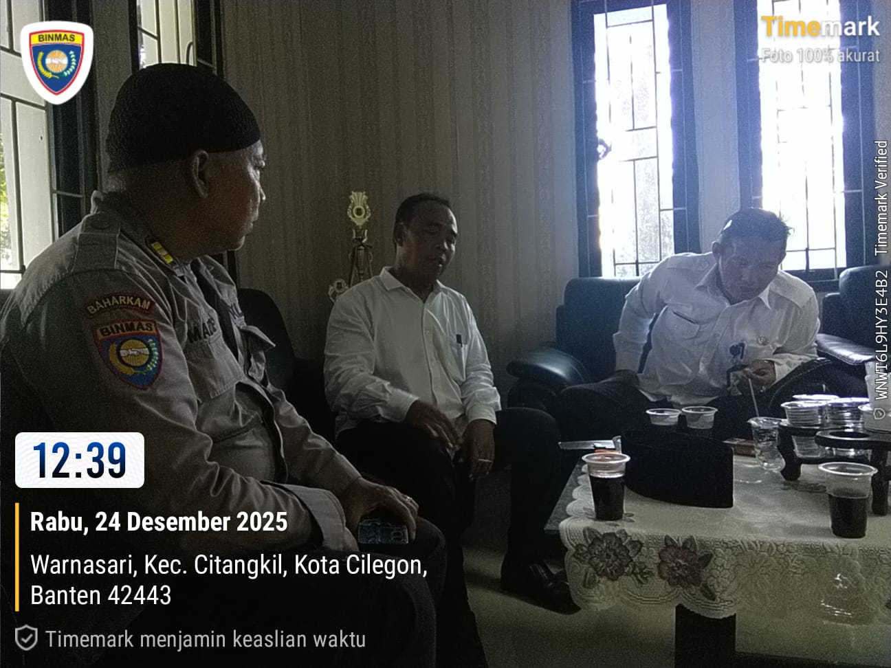 Cilegon -  Kali ini Wakapolsek Ciwandan AKP Uup M. Ma'ruf Dan Bhabinkamtibmas Kelurahan Warnasari Polsek Ciwandan Polres Cilegon Polda Banten BRIPKA Heri Siswantoko melaksanakan kegiatan sambang Dialogis Dan silaturahmi Bersama Lurah Dan Staff Warnasari Kecamatan Citangkil Kota Cilegon, Rabu (24/12/2025).