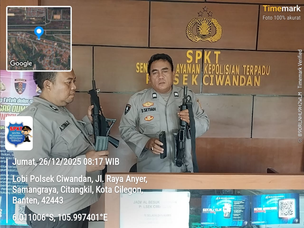Cilegon - Sebelum melaksanakan tugas jaga Mako Personil Polsek Ciwandan Polres Cilegon Polda Banten Melaksanakan Serah Terima Tugas jaga dan Mengecek Kelengkapan barang-barang Inventaris, Sabtu (27/12/2025).