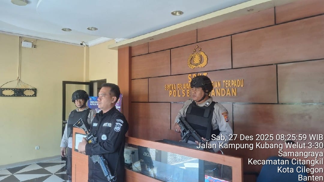 Cilegon - Guna mengantisipasi adanya potensi ancaman dan gangguan terhadap keamanan kantor maupun keselamatan personel piket jaga, Personil Polsek Ciwandan Polres Cilegon Polda Banten selalu tingkatkan kesiapsiagaan dan kewaspadaan dengan rutin menggelar kegiatan Sistem Pengamanan Mako (Sispam Mako), Sabtu (27/12/2025).