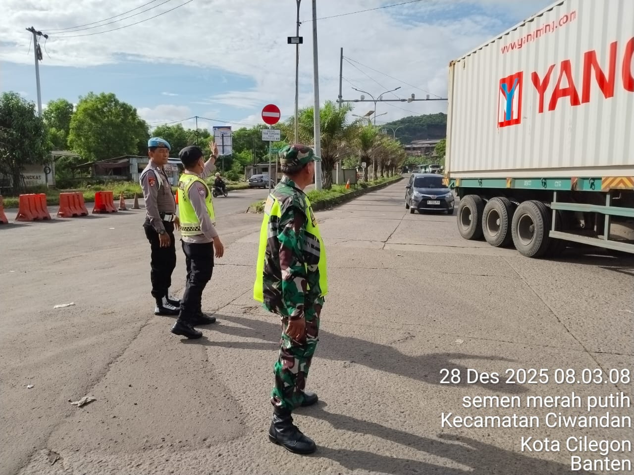 Cilegon - Dalam rangka memberikan Pelayanan terbaik kepada warga masyarakat Personil Pospam 5 Polsek Ciwandan Polres Cilegon Berkolaborasi Dengan Babinsa Koramil Ciwandan Dalam Menciptakan situasi yang kondusif, Minggu (28/12/2025).