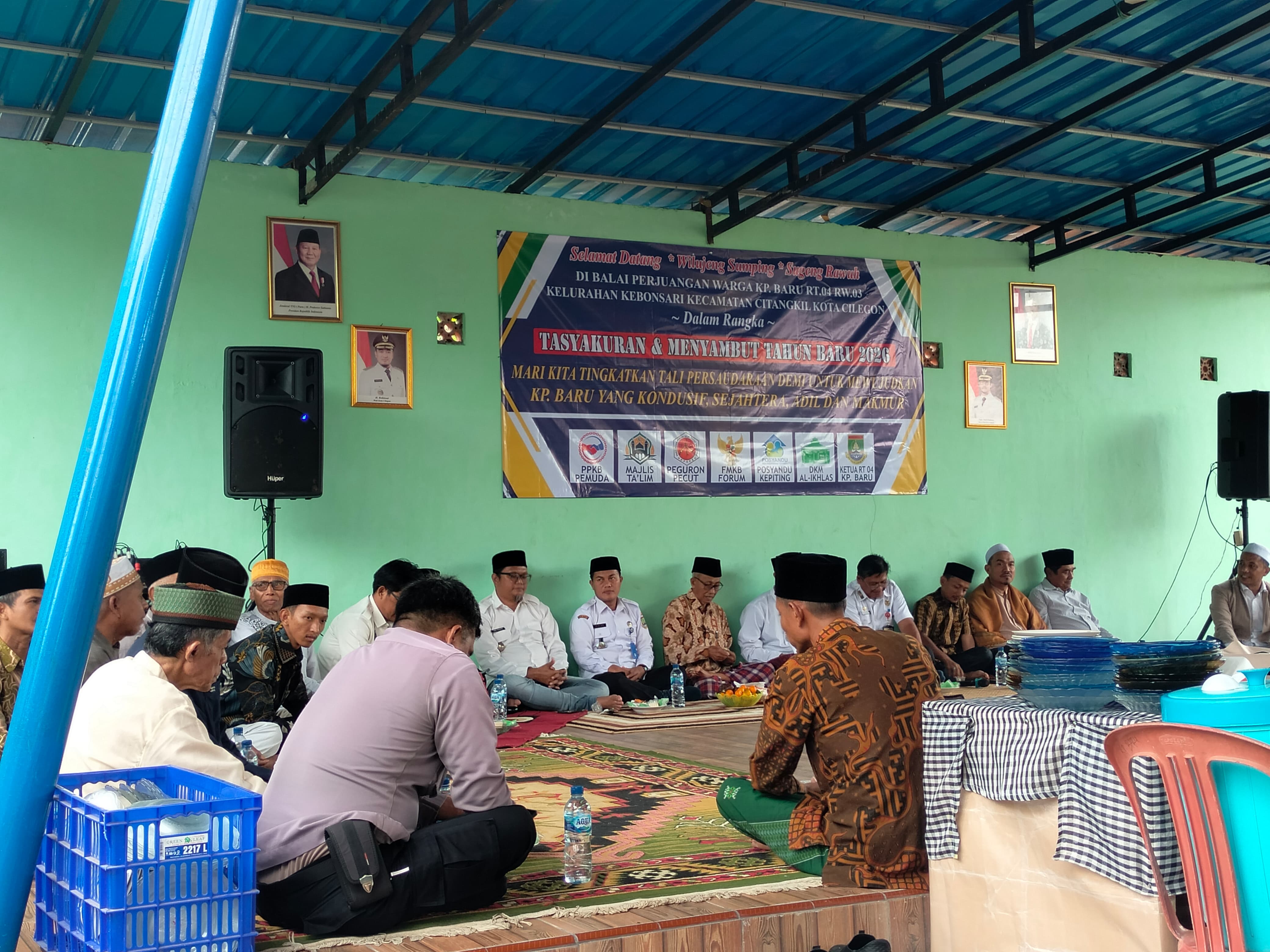 Cilegon - Polres Cilegon melalui Bhabinkamtibmas AIPDA M. Enday dan Babinsa SERMA Heriyanto hadiri tasyakuran dan sambutan Tahun Baru 2026 di Balai Perjuangan Warga Kampung Baru Rt. 04/03, Kebonsari, Citangkil. Kegiatan ini bagian dari giat "Commander Wish Kapolres Cilegon TRENDING" untuk jaga kondusifitas keamanan dan kebersamaan dengan masyarakat,Rabu (31/12/2025).