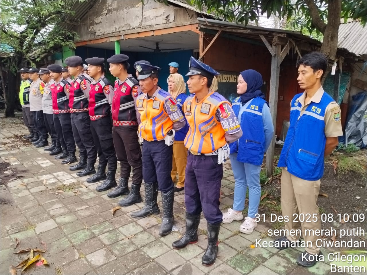 Cilegon - Personil Pospam 5 Ciwandan Polsek Ciwandan Polres Cilegon Polda Banten melaksanakan Apel Kesiapan Pelaksanaan kegiatan pengamanan Arus Lalu-lintas Wisata Dalan Operasi Lilin Maung 2025, Rabu (31/12/2025)