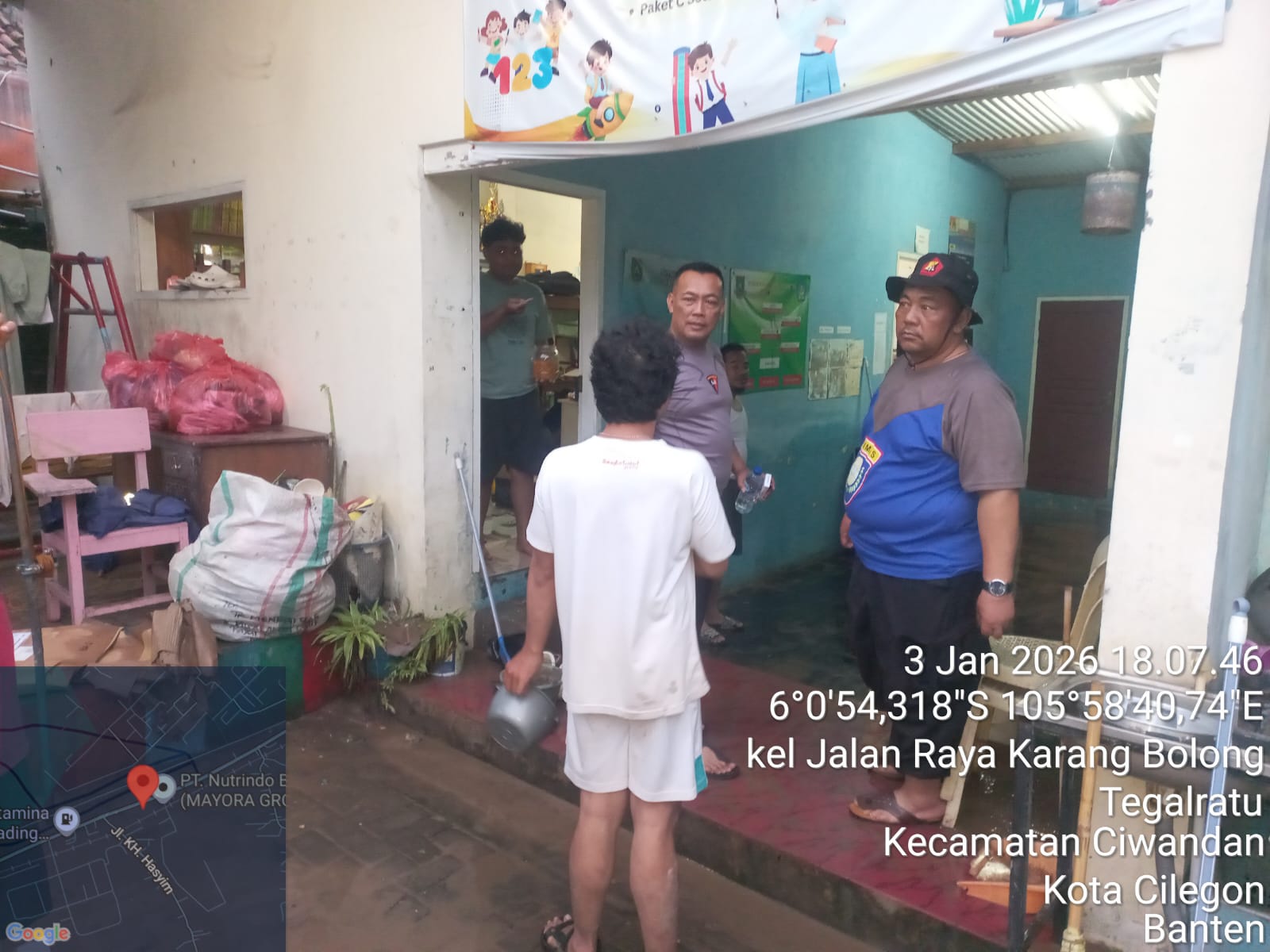 Cilegon - Hujan deras yang melanda Cilegon menyebabkan banjir di Komplek Sinyar, Tegal Ratu, Ciwandan. Polres Cilegon melalui Polsek Ciwandan langsung turun tangan bantu warga terdampak, Sabtu (03/01/2026).
