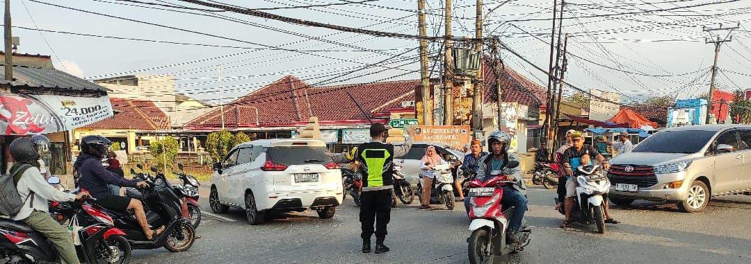 Kegiatan Pengaturan Lalu Lintas Personil Polsek Anyar di Jl. Raya Anyar agar Aman dan Lancar