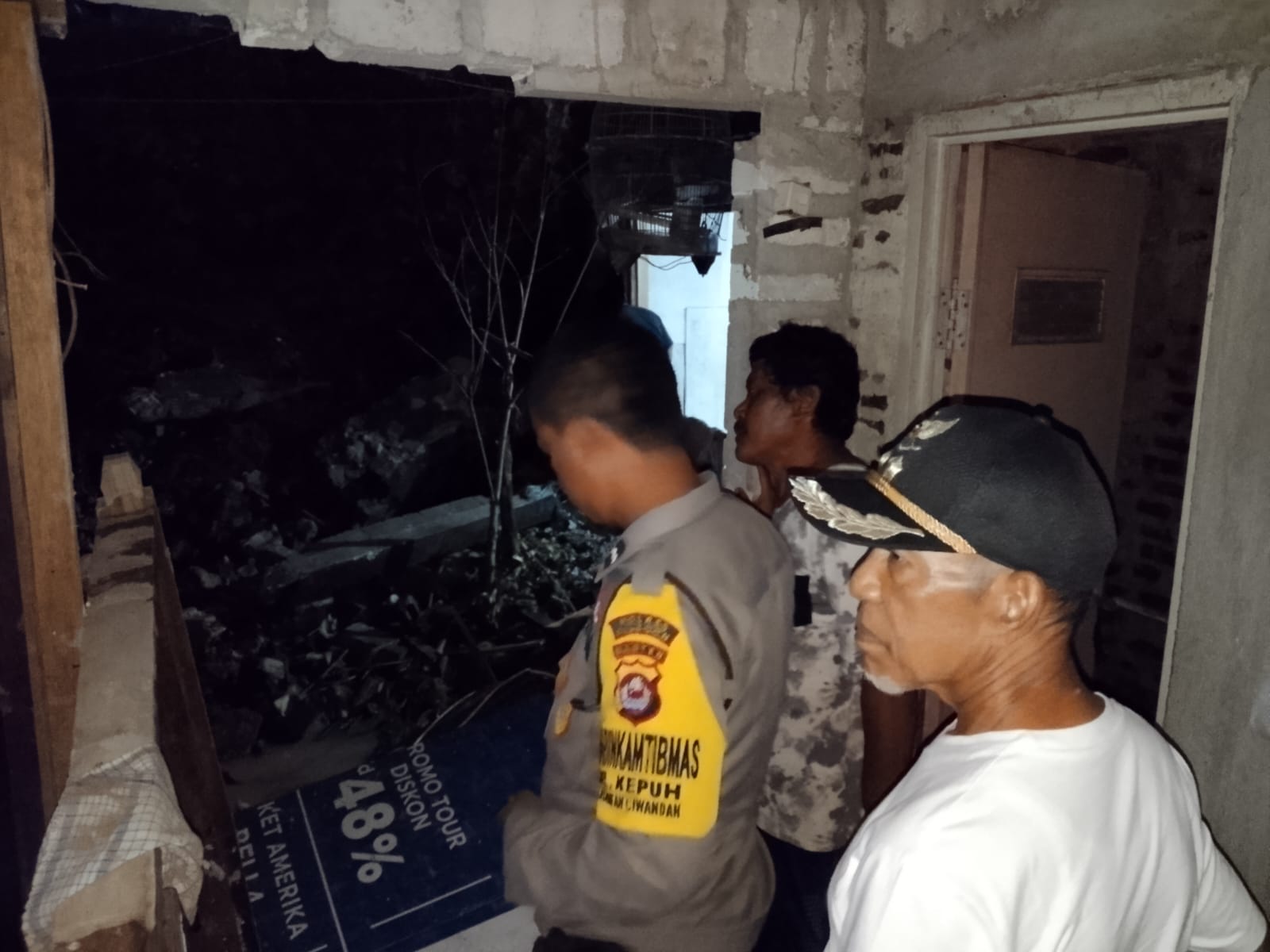 Cilegon - Bhabinkamtibmas, Babinsa Kel. Kepuh, Ketua LSM Ampuh, dan Lurah Kepuh melakukan pengecekan tembok belakang rumah warga dan gubung usaha di Link. Rombongan RT. 01/01 Kel. Kepuh, Ciwandan, Cilegon. Tembok rumah roboh tertimpa pondasi PT. KENERTEK POWER SISTEM pasca banjir pada Senin (05/01/2026).