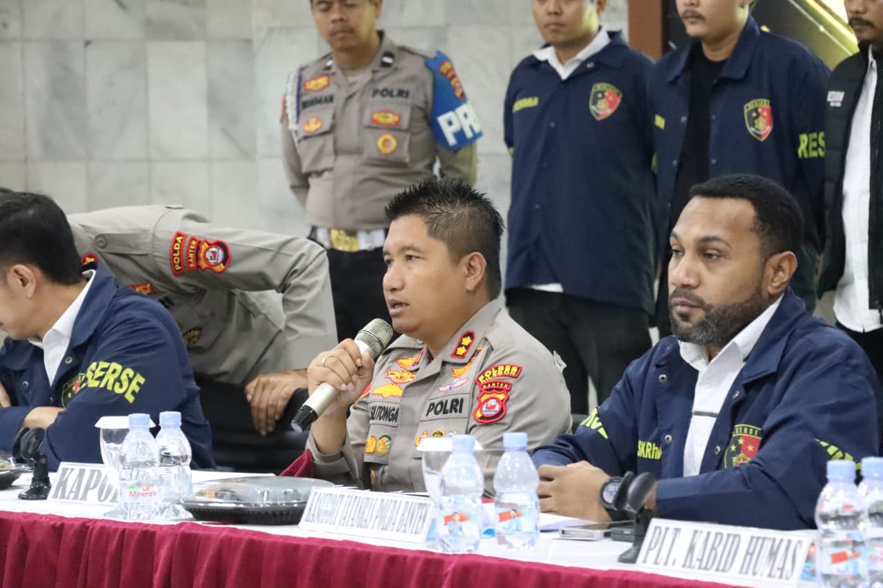 Press conference tersebut disampaikan oleh Ditreskrimum Polda Banten Kombes Pol Dian Setyawan didampingi Kapolres Cilegon AKBP Dr. Martua Raja Taripar Laut Silitonga, Plh. Kabid Humas Polda Banten AKBP Meryadi, Wakapolres Cilegon Kompol Arief Nazarudin, Kasubdit Jatanran Ditreskrimum Polda Banten Kompol Yeremia Iwo, Kasat Reskrim Polres Cilegon AKP Yoga Tama, Ka Instalasi Forensik Modikolegal RSUD Cilegon Dr. Baeti Adhayati SP FM, Puslabfor Polri Kompol Irfan Rofik.