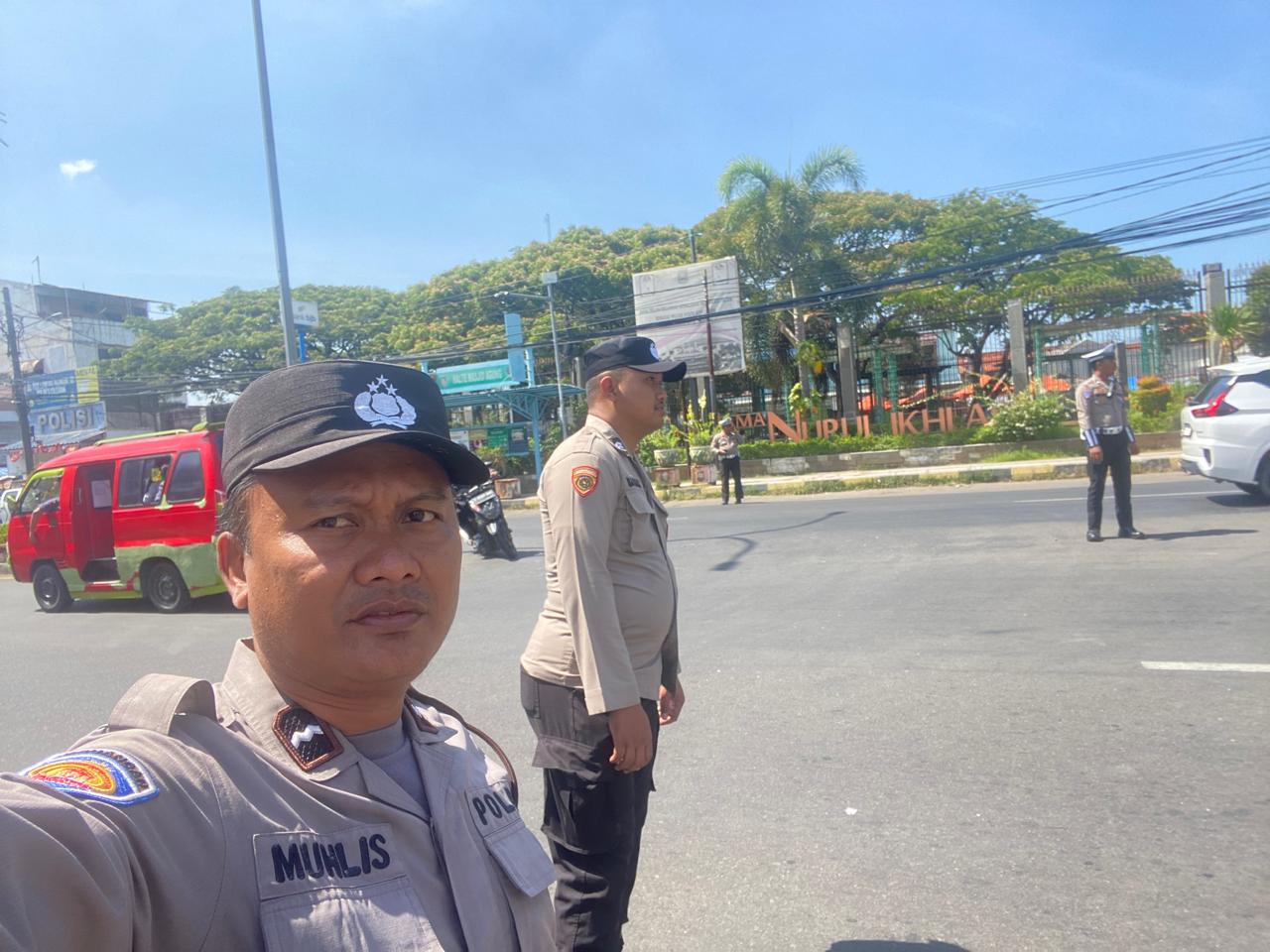 Cilegon – Personel Polres Cilegon melaksanakan kegiatan pengaturan lalu lintas di depan Masjid Agung Cilegon pada pagi hari guna memastikan kelancaran arus kendaraan dan keselamatan pengguna jalan.