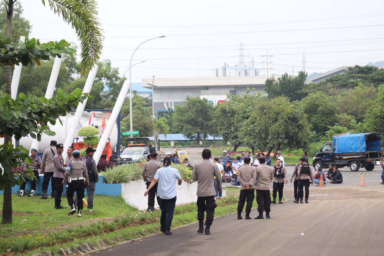 Aksi FSPMI Sampaikan Tuntutan PKWTT, Polres Cilegon Pastikan Situasi Tetap Terkendali