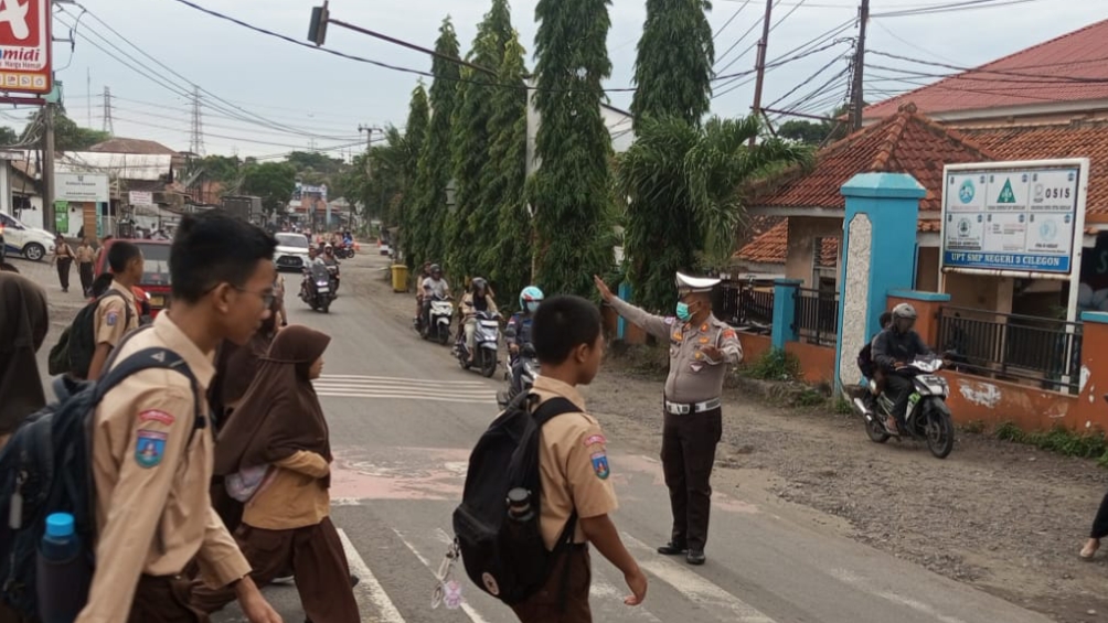 Tasyakuran Siswa/i SMP 3 Cilegon, panit lantas Polsek Pulomerak bantu atur lalin