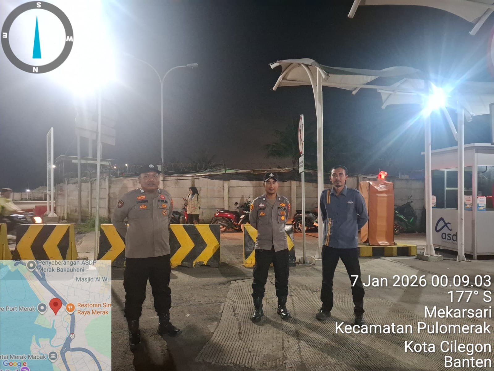Cilegon - Personil Polsek Kskp Merak Polres Cilegon melaksanakan patroli di kawasan pelabuhan merak memberikan rasa aman dan damai, Rabu (07/01/2026)
