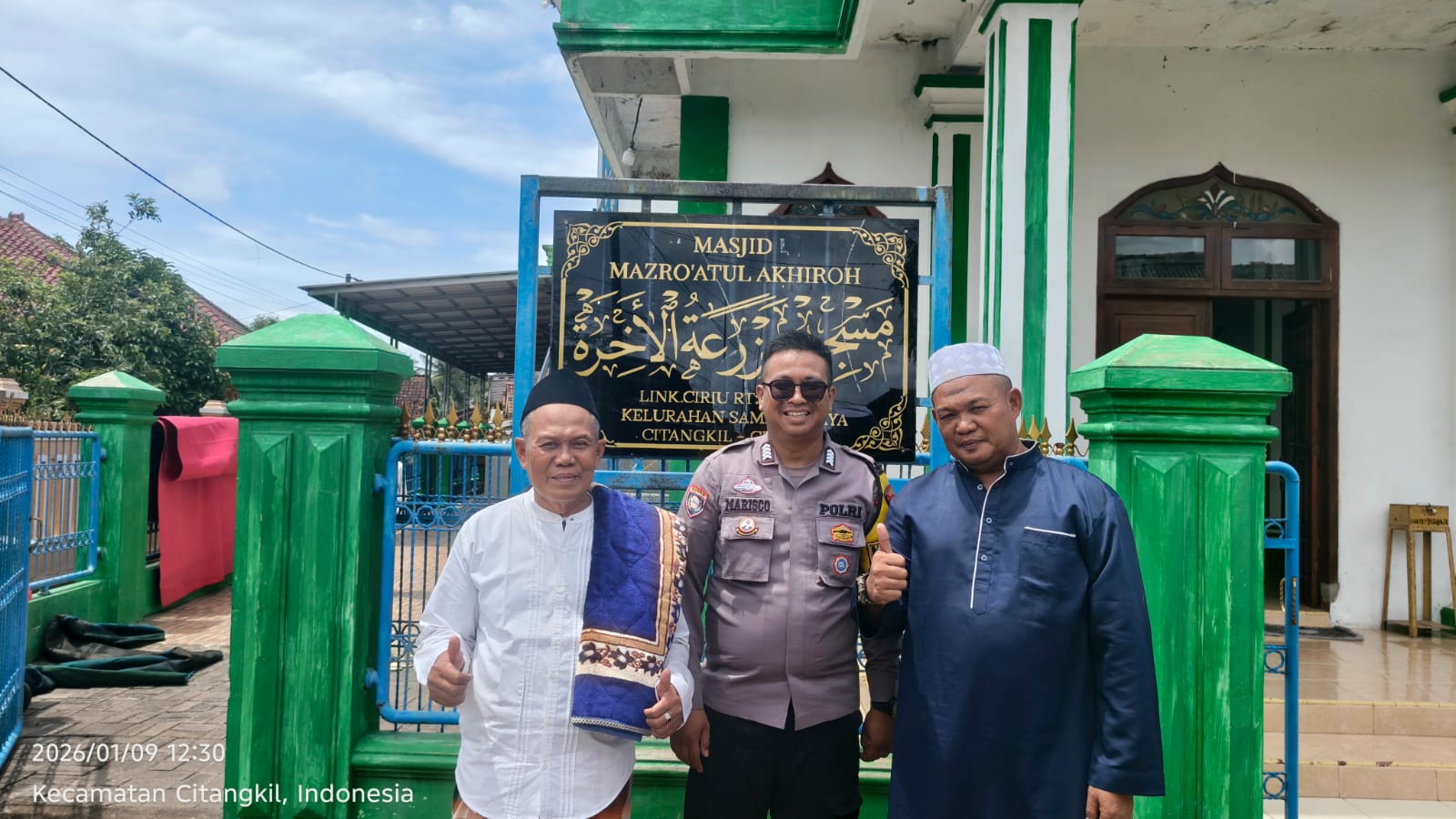 Menindaklanjuti Program Kapolda Banten Bhabinkamtibmas Polsek Ciwandan Polres cilegon Polda Banten berusaha menyempatkan diri untuk bersilaturahmi dengan masyarakat,di samping itu juga sebagai sarana kegiatan dalam memakmurkan Masjid dengan menunaikan ibadah Sholat berjama’ah bersama, ungkapnya.