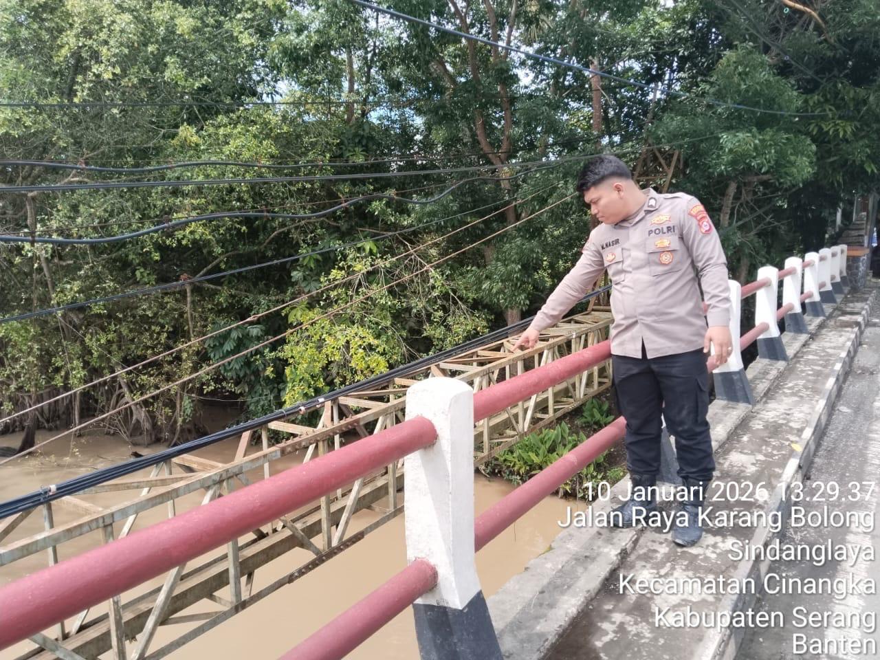 Piket Polsek Cinangka secara rutin melakukan pengecekan kondisi sungai dan berkoordinasi dengan pihak terkait untuk memantau perkembangan debit air. Pemantauan ini juga melibatkan partisipasi aktif dari masyarakat setempat.
