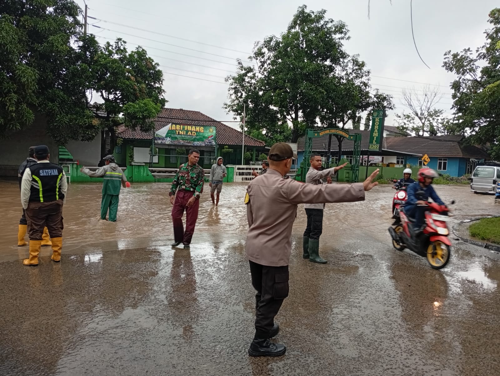 Dalam upaya penanganan dampak Banjir/ Genangan Air di Jalan Raya Ciwandan – Anyer didepan Koramil Ciwandan Dan kawasan Kiec II Kelurahan Tegal Ratu Kecamatan Ciwandan Kota Cilegon dengan ketinggian debit air 40 cm sehingga jalur 2 (dua) arah tidak dapat dilintasi oleh kendaraan baik R2 maupun R4 pribadi, tuturnya.