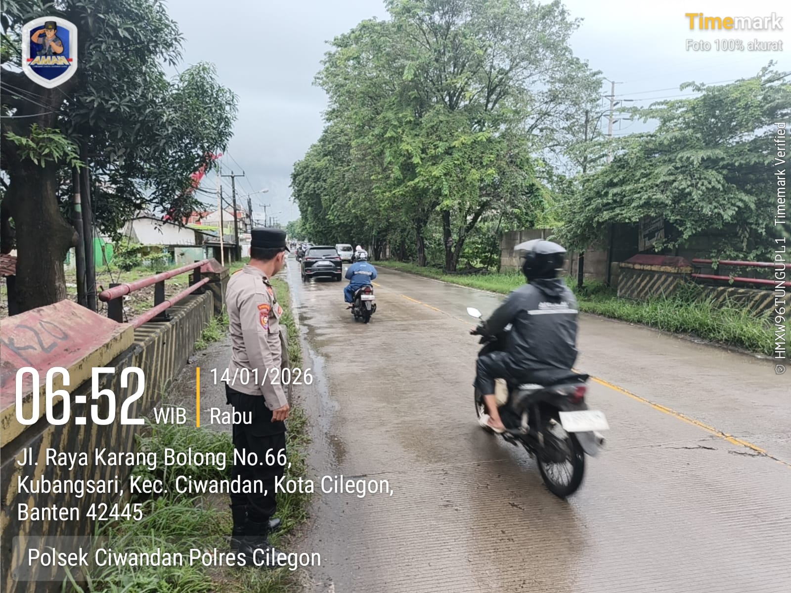 Kapolres Cilegon Polda Banten AKBP Dr. Martua Raja Taripar Laut Silitonga melalui Kapolsek ciwandan Kompol Andi Suherman mengatakan bahwa atas perintahnya kepada seluruh Babinkamtibmas jajaran Polsek ciwandan agar mengantisipasi cuaca yang akhir-akhir ini sering turun hujan lebat dan mengecek debit air aliran sungai yang ada di lingkungan binaan masing-masing