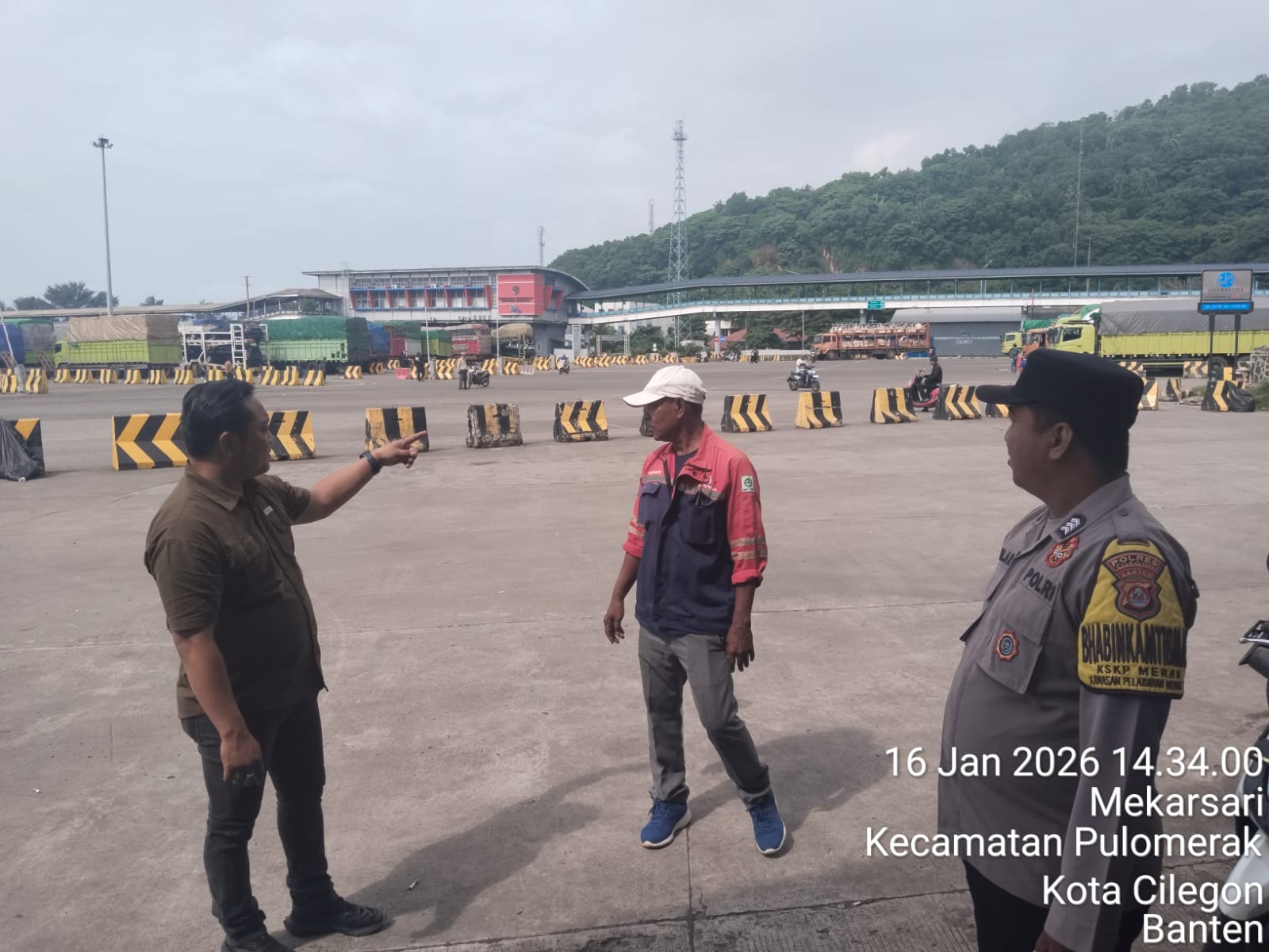 Cilegon - Personel Polsek Kskp Merak Polres Cilegon Polda Banten melaksanakan sambang dan patroli kawasan pelabuhan merak dalam rangka menjaga Harkamtibmas di Kawasan Pelabuhan Merak, Jumat (16/01/2026).