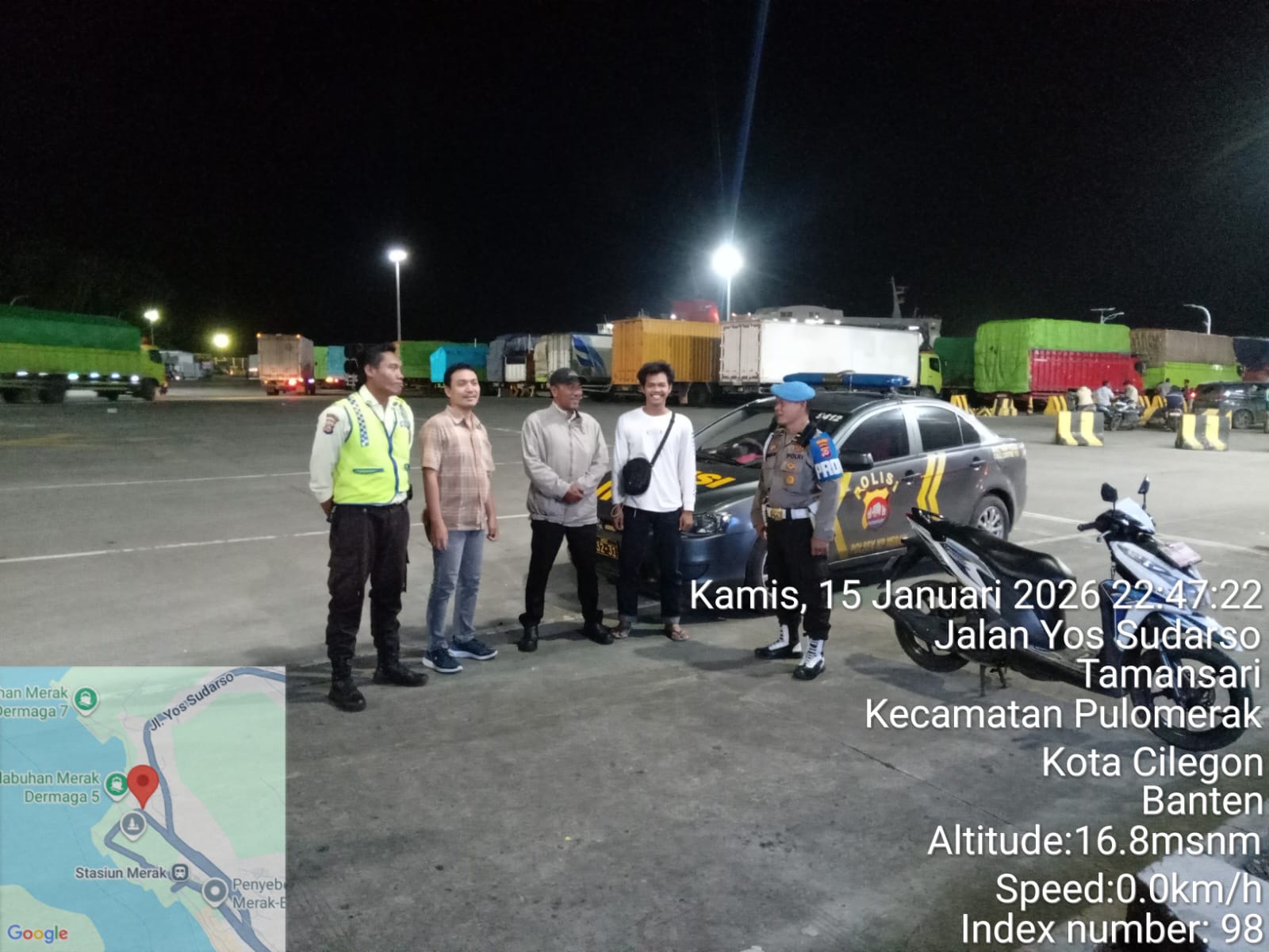 Cilegon - Personil Polsek Kskp Merak Polres Cilegon melaksanakan patroli di kawasan pelabuhan merak memberikan rasa aman dan damai, Jumat (16/01/2026)