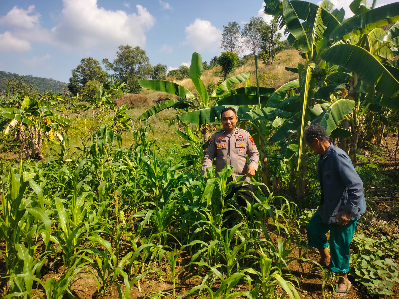 Pantau lahan jagung pok tani sinarjaya kecamatan.puloampel Desa banyuwangi oleh Bhabinkamtibmas Polsek Puloampel