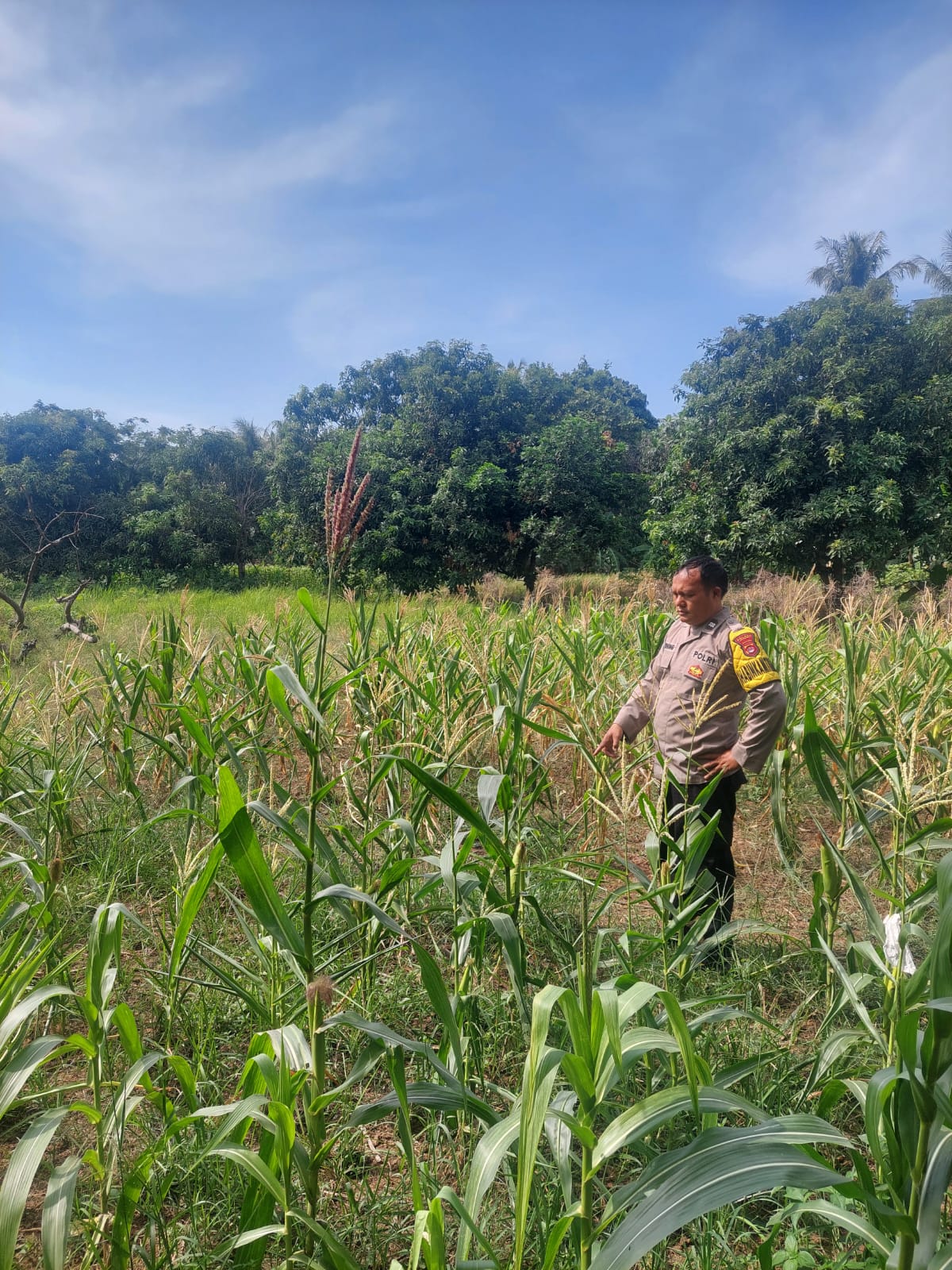 Pantau lahan jagung pok tani sinarjaya kecamatan.puloampel Desa Puloampel oleh Bhabinkamtibmas Polsek Puloampel
