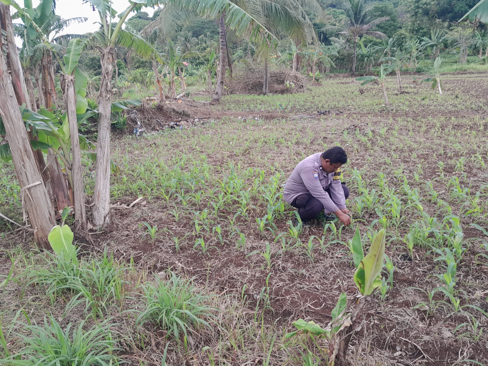 Dalam kunjungannya, Aiptu Wawan tidak hanya memeriksa kondisi pertumbuhan tanaman jagung, namun juga memberikan arahan sederhana terkait perawatan dan pencegahan hama serta penyakit tanaman kepada para petani lokal. Warga menyambut baik kunjungan tersebut dan menyampaikan berbagai kendala yang menghadang dalam proses cocok tanam.