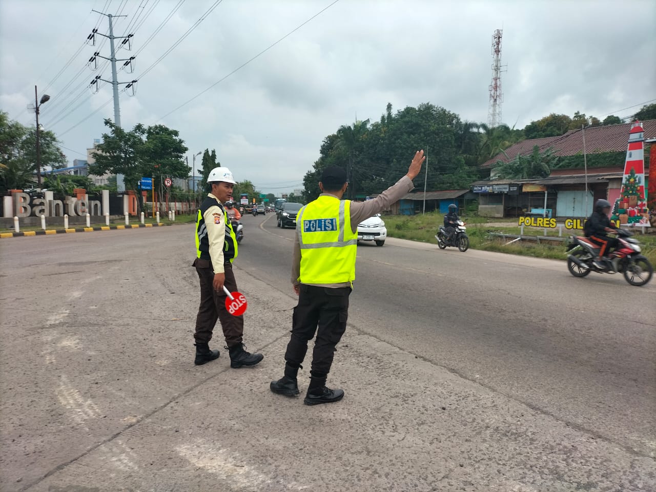 Kapolres Cilegon AKBP Martua Raja Taripar Laut Silitonga Melalui Kapolsek Kskp Banten Polres Cilegon AKP Fredo Leonard menyampaikan Laksanakan Pengamanan Sesuai plotinganya lakukan Pengaturan Supaya Arus Lalu Lintas tetap Berjalan lancar dan Pastikan tidak ada hambatan.