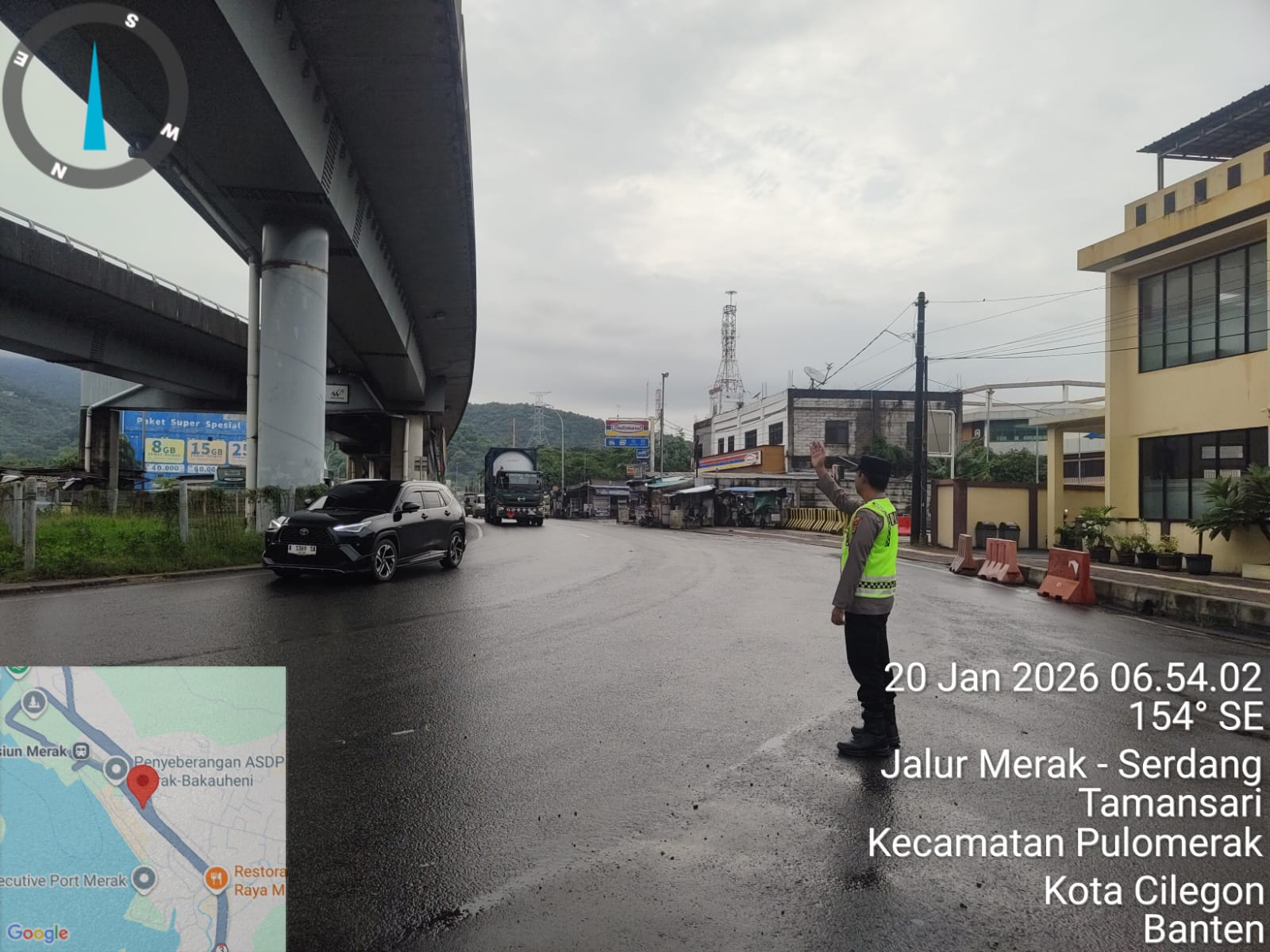 Kapolres Cilegon Polda Banten AKBP Martua Raja Taripar Laut Silitonga melalui Kapolsek Kskp Merak AKP Gusti Almasri P menyampaikan bahwa kegiatan pengaturan antrian ini adalah dalam rangka memberikan pelayanan kepada masyrakat yang akan menyebrang ke Bakauheni atau Sumatra melalui jalur laut dengan menaiki kapal Ferry.
