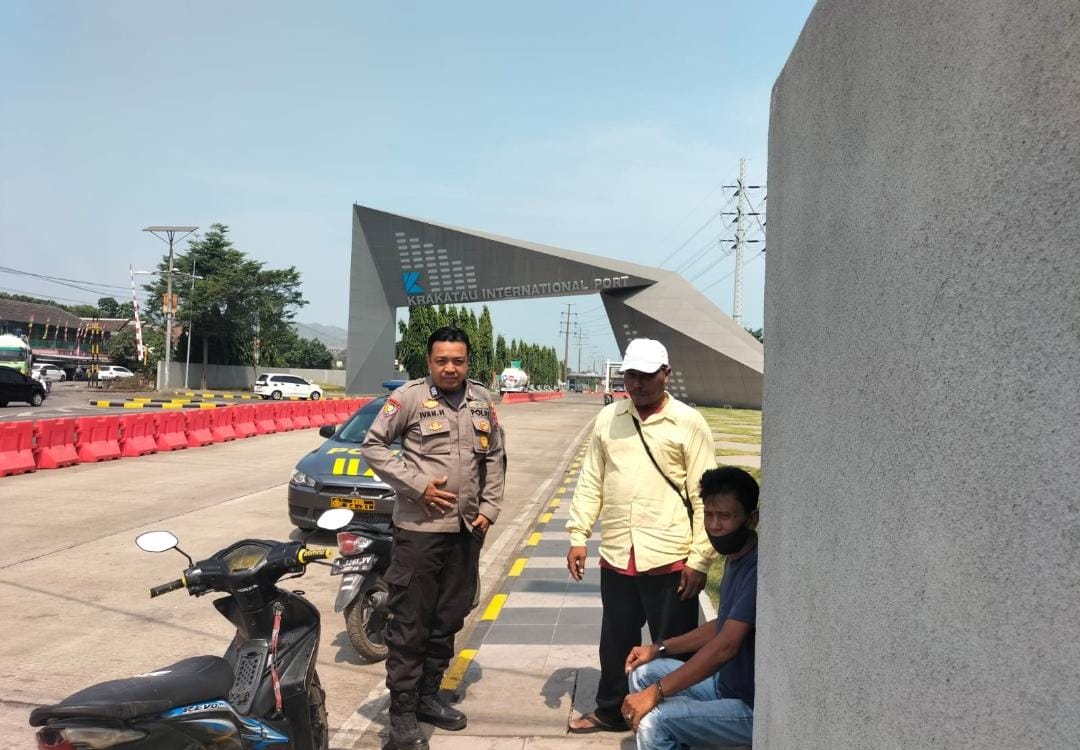 Bhabinkamtibmas Pelabuhan Polsek Kawasan Pelabuhan Banten berbincang ke Buruh Pelabuhan