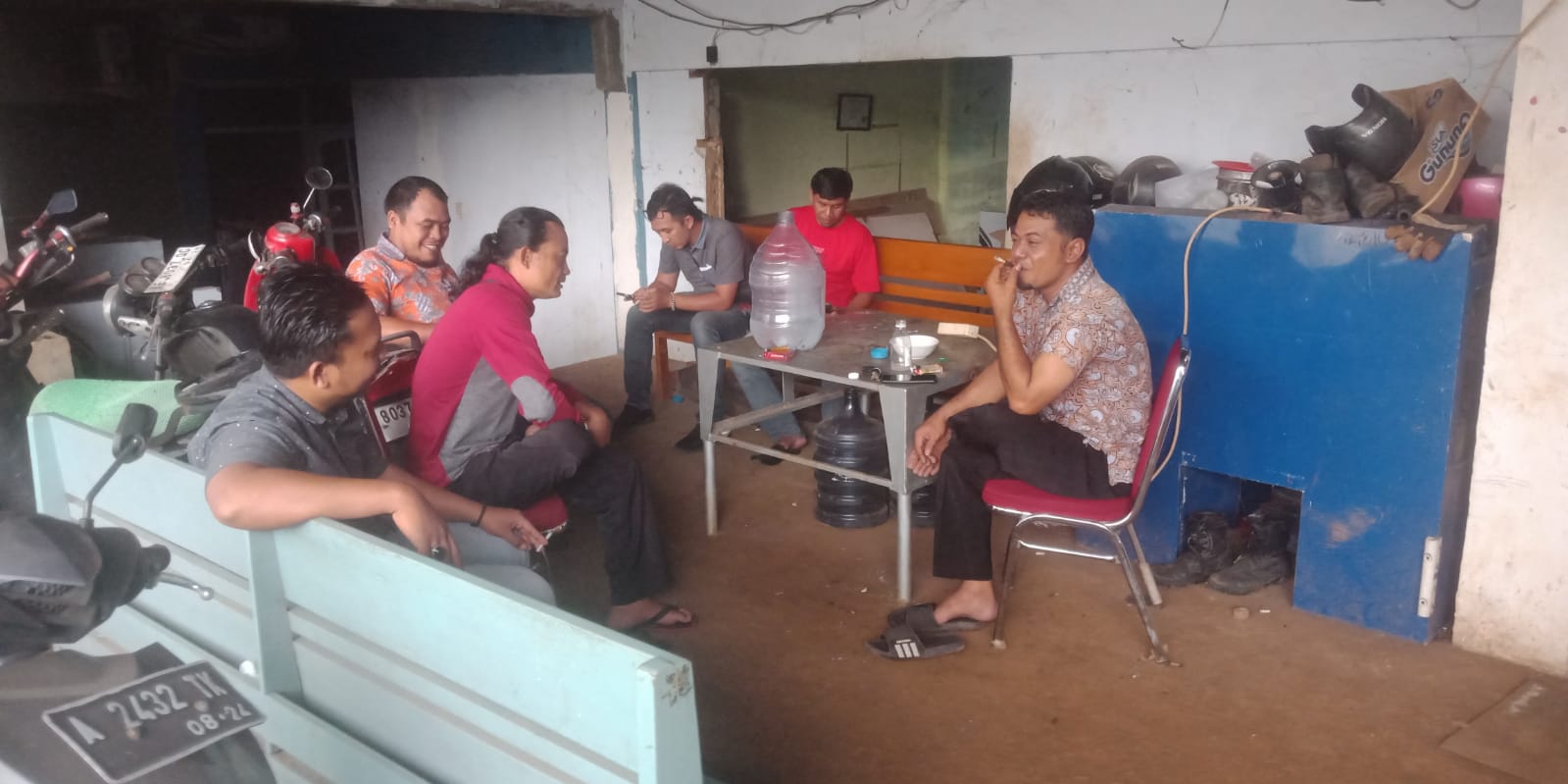 Personil sat intelkam melakukan koordinasi dengan tokoh pemuda kec. Mancak kabupaten serang.