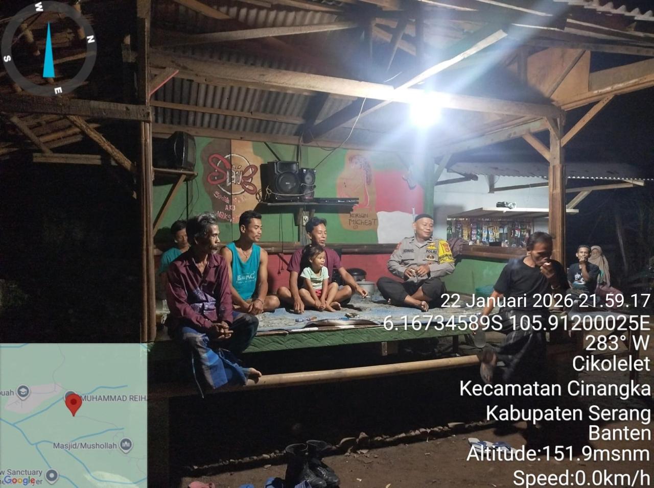 *Polres Cilegon* || Personil Bhabinkamtibmas Polsek Cinangka melaksanakan Program Komandan Wish Kapolda Banten RONDA SATKAMLING menyampaikan komunikasi dengan Petugas Siskamling agar berperan aktif dalam menciptakan Harkamtibmas yang aman dan Kondusif, Jumat (23/01/2026).