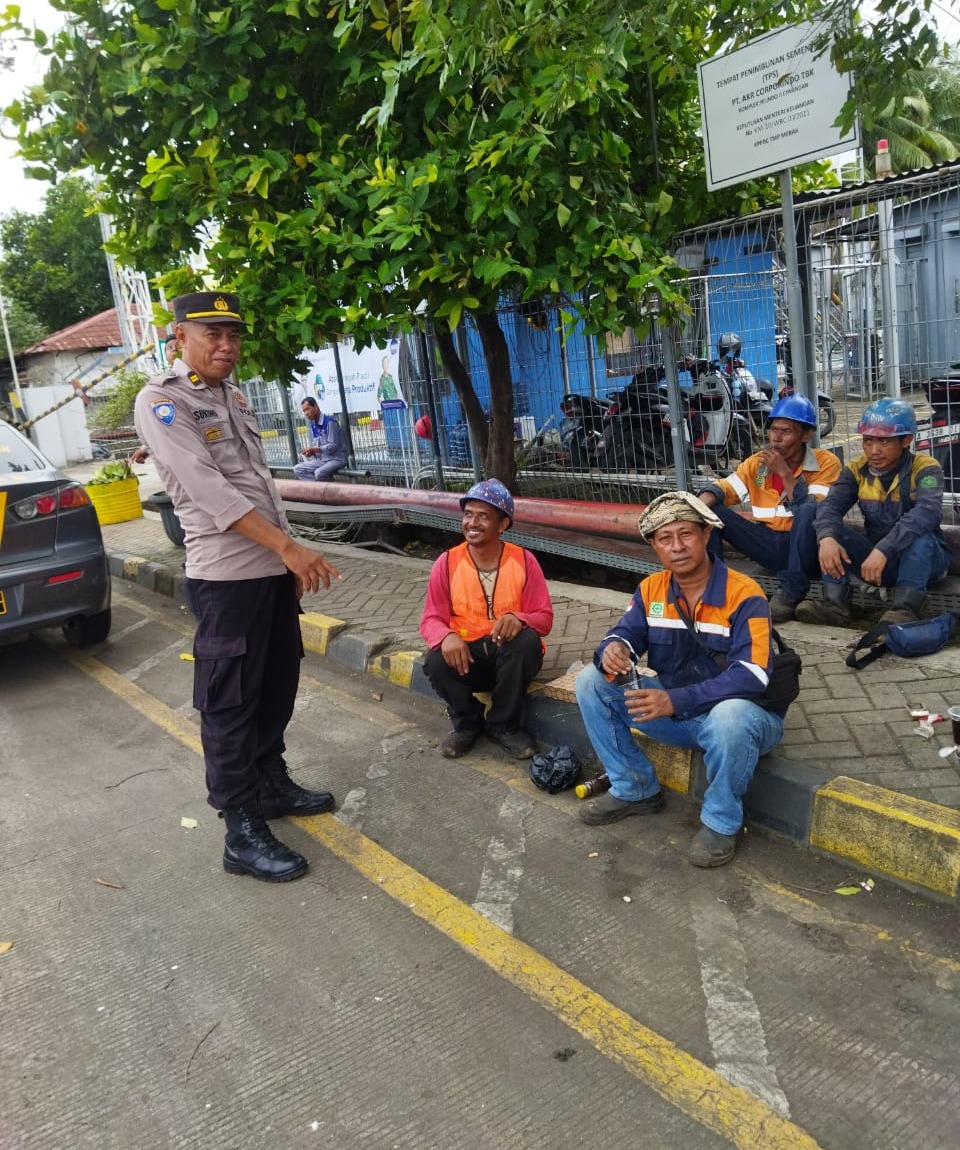 Cilegon ~ Bhabinkamtibmas Polsek KP Banten Polres Cilegon Polda Banten Berikan Himbauan Kamtibmas Sambang Warga Binaan dan Jalin silaturahmi serta melaksanakan kegiatan patroli ke wilayah Binaan dan menyambangi Buruh. Senin (26/01).