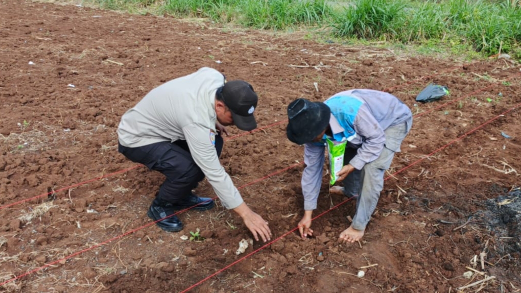 Polsek Pulomerak Bersama Kelompok Tani Lakukan penanaman Jagung