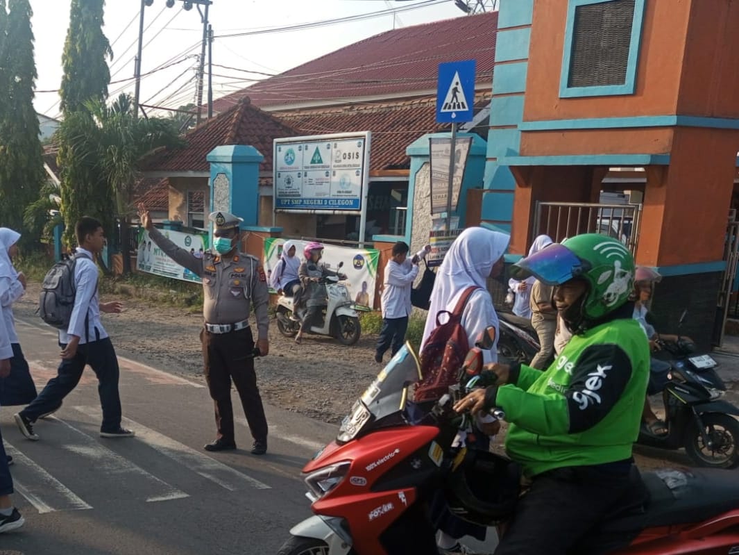 Kanit Lantas Polsek Pulomerak Bantu atur lalin di depan SMP 3 Cilegon