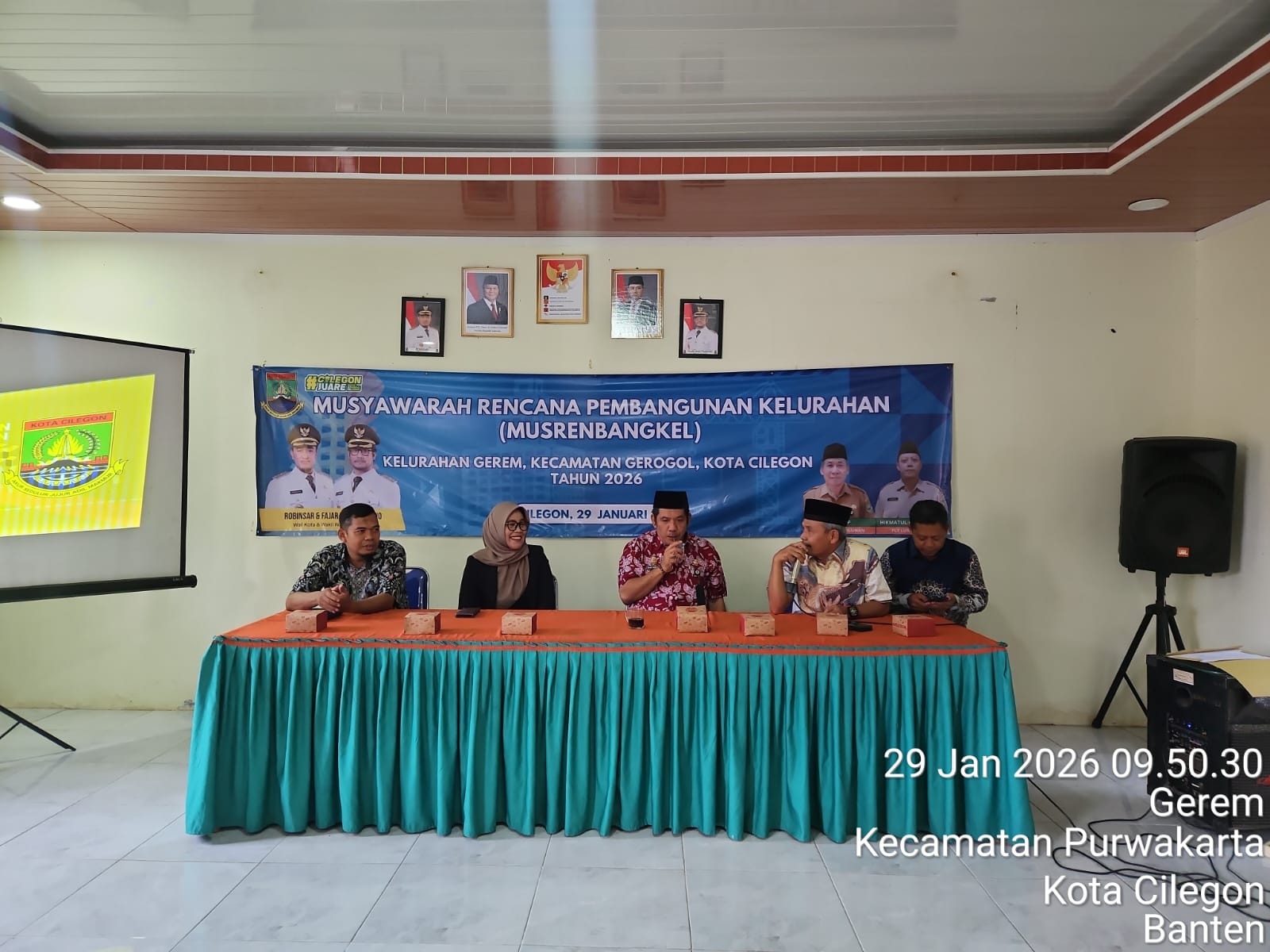 Cilegon - Polres Cilegon Polda Banten, Personil Bhabinkamtibmas Polsek Pulomerak Polres Cilegon AIPDA Asep Irmawan menghadiri Musyawarah Perencanaan Pembangunan Kelurahan (Musrenbangkel) tingkat Kelurahan Gerem Kec. Gerogol T.A 2026, Kamis (29/01/2026).