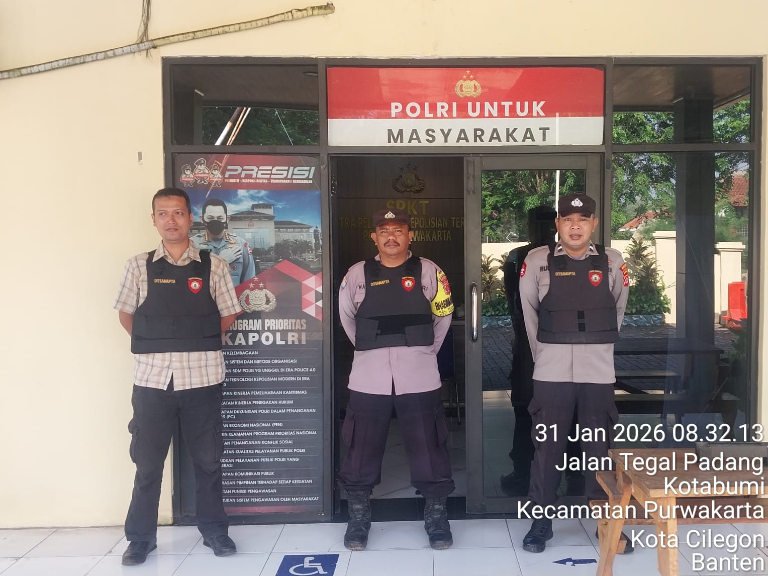 Kapolres Cilegon Polda Banten AKBP Dr. Martua Raja Taripar Laut Silitonga S.H, S.IK, M.Si.yang diwakili oleh Kapolsek Purwakarta Polres Cilegon IPTU Sukanda menerangkan bahwa sebagai langkah dalam mencegah timbulnya potensi gangguan dari luar terhadap keamanan kantor maupun keselamatan personel piket jaga, selalu memerintahkan kepada personel yang melaksanakan piket jaga Mako agar sewaktu-waktu menggelar kegiatan Sispam Mako.