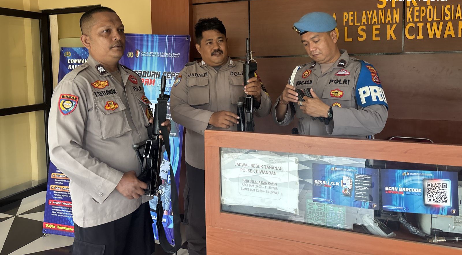 Kapolres Cilegon Polda Banten AKBP Dr. Martua Raja Taripar Laut Silitonga Melalui Kapolsek Ciwandan Polres Cilegon Polda Banten KOMPOL Achri Dwi Yunito Menekankan dan menegaskan dalam serah terima tugas jaga Mako dan pelayanan KA-SPKT wajib mengecek barang Inventaris mulai dari Senpi Dinas, Mobil Patroli, serta barang Inventaris lainya termasuk Mako apabila ada hal yang tidak sesuai wajib di cek secara seksama sehingga sewaktu serah terima tidak ada yang terabaikan dan dapat dipertanggung jawabkan, ungkapnya.