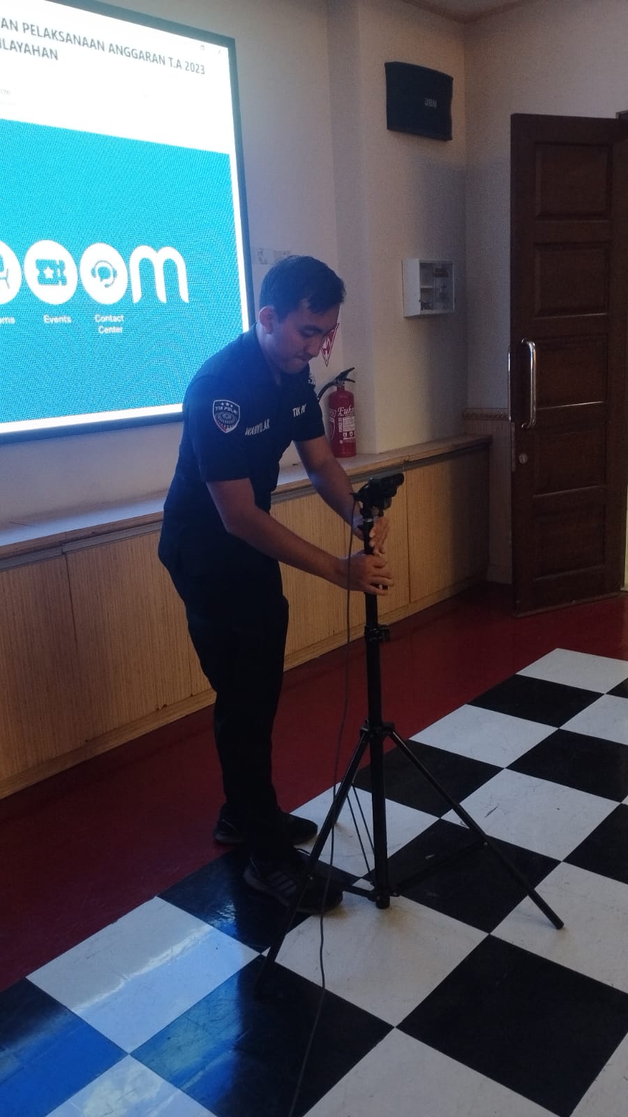 Anggota Tik Polres Cilegon Menyiapkan Sarana dan Prasarana Untuk Kegiatan Zoom meeting Dalam pelaksanaan kegiatan zoom meeting tersebut anggota TIK Polres Cilegon yang bertanggung jawab untuk menyiapkan peralatan zoom. Selain itu agar di tidak ada gangguan jaringan sebelum pelaksanaan anggota TIK melakukan pemeriksaan terhadap sarana dan prasarana tersebut . Satu jam sebelum kegiatan zoom meeting itu dimulai. Kapolres Cilegon AKBP. DR. MARTUA RAJA TARIPAR LAUT SILITONGA. melalui Kasi TIK IPTU Jajang Rohendi menyampaikan bahwa “untuk menunjang kelancaran penyampaian informasi anggota TIk Polres Cilegon selalu memeriksa sarana dan prasarana tersebut, sebelum maupun pada saat pelaksanaan akan selalu di monitor”