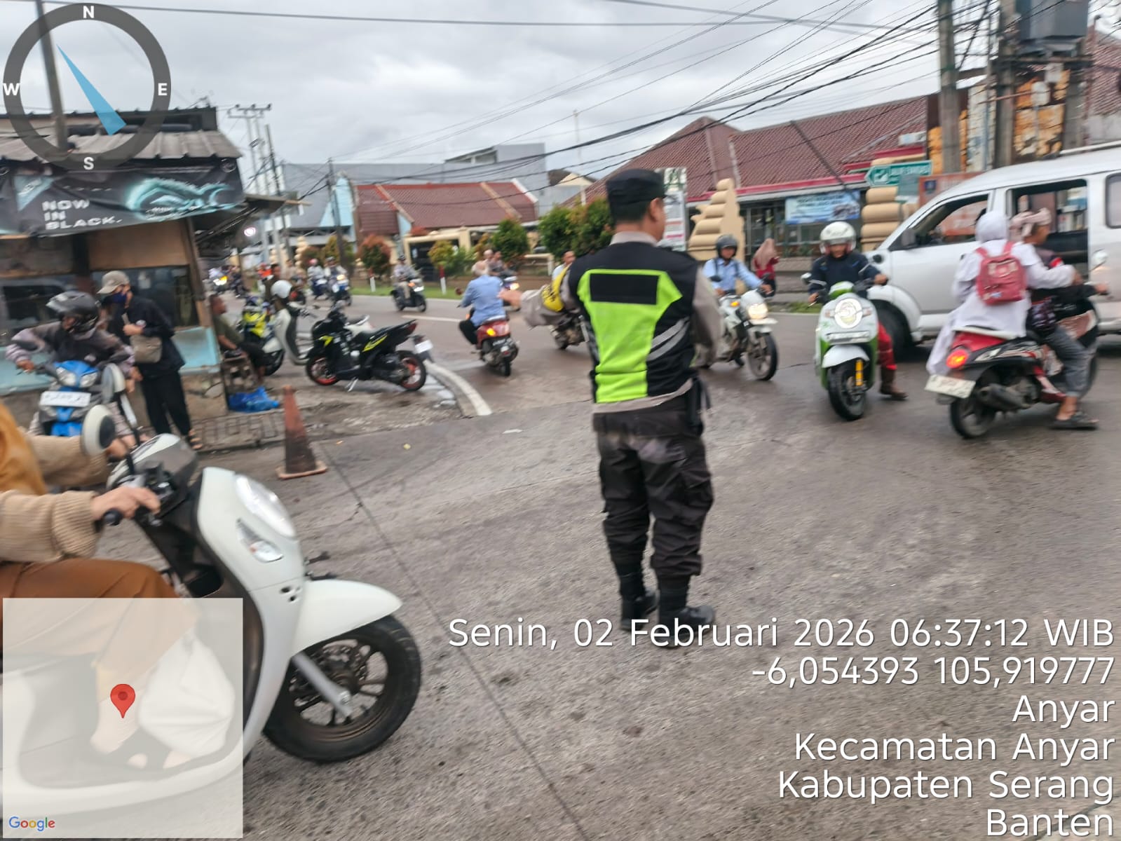 Cilegon – Polres Cilegon Polda Banten, Dalam Mewujudkan Aksi Nyata Pelayanan Kepada Masyarakat, Personil Polsek Anyer Polres Cilegon Polda Banten Laksanakan Strong Point Pengaturan Lalu lintas, Senin (02/02/2026).