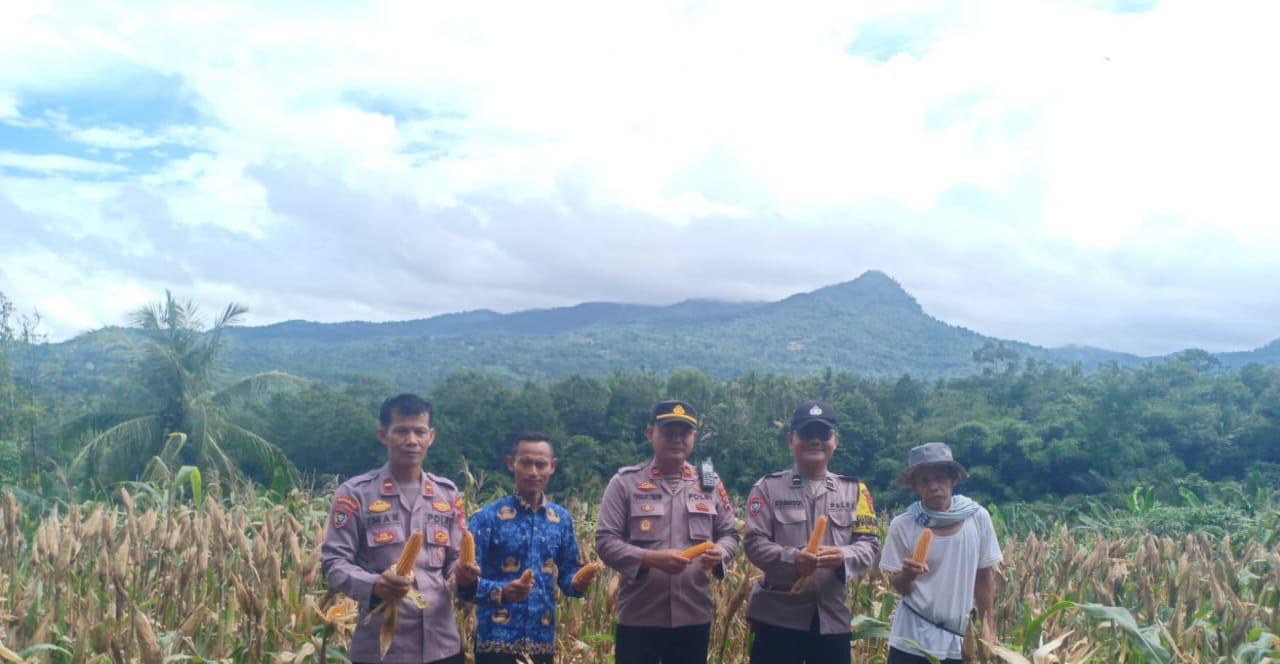 Polsek Anyar Lakukan Pendampingan Pada Panen Jagung Kelompok Tani