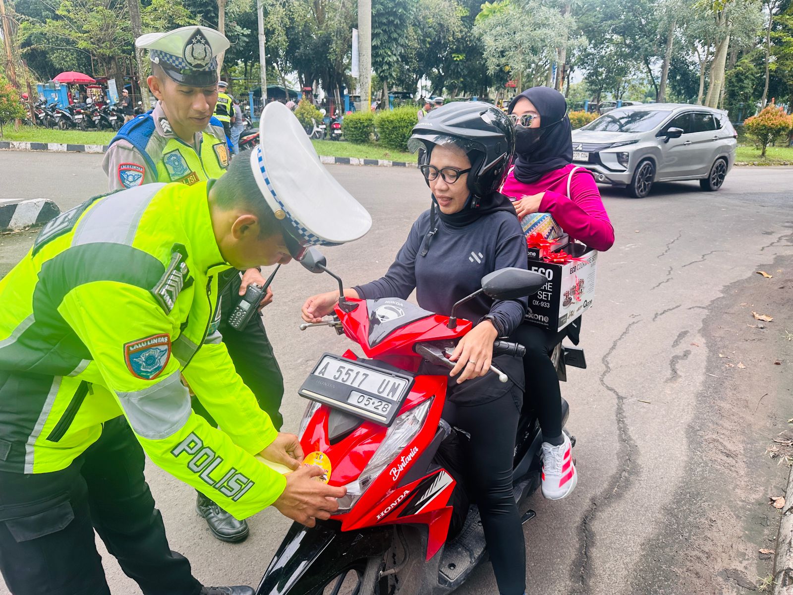 Selain teguran, petugas juga melaksanakan bimbingan dan penyuluhan (Binluh) kepada masyarakat, khususnya pengendara sepeda motor dan pengunjung CFD, terkait pentingnya tertib berlalu lintas, penggunaan helm berstandar SNI, kelengkapan kendaraan, serta keselamatan dalam berkendara.