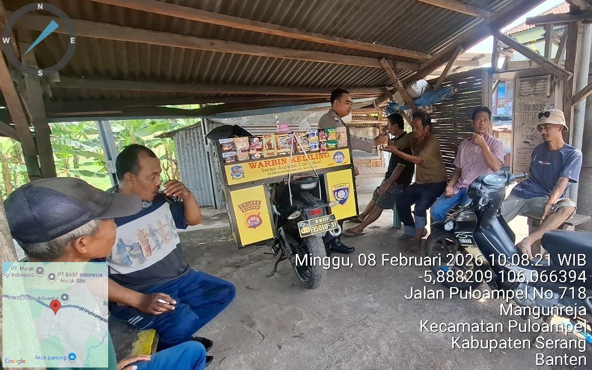Anggota Bhabinkamtibmas Polres Cilegon bersama Kanit Bintibsos melakukan kegiatan penyerahan sarana kontak untuk: