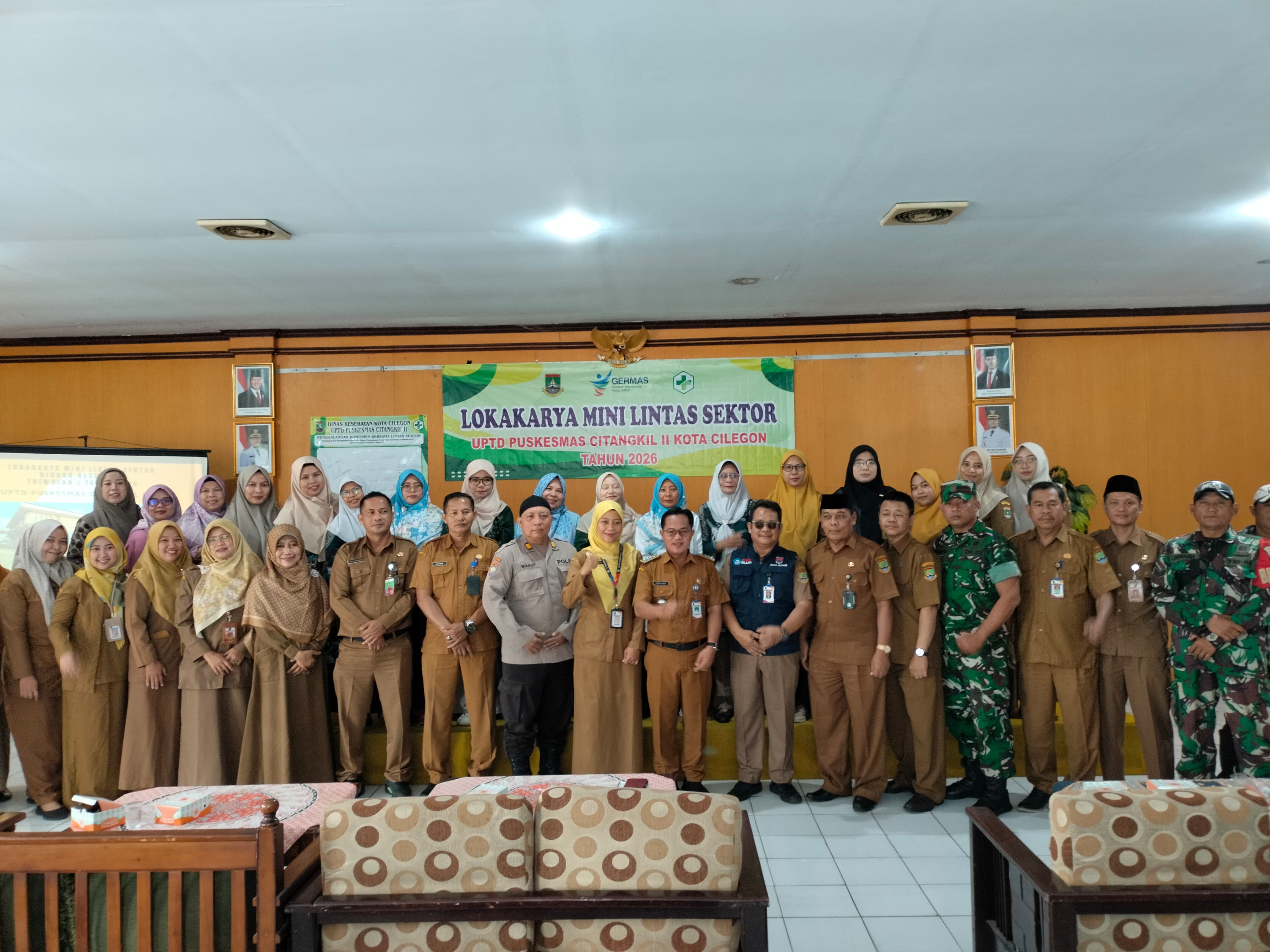 Cilegon - Wakapolsek Ciwandan Polres Cilegon Polda Banten AKP Uup M. Ma'ruf Bersama Personil Bhabinkamtibmas Polsek Ciwandan menghadiri kegiatan Lokakarya mini Lintas Sektor Bidang Kesehatan UPTD Puskesmas Citangkil 2 Tahun 2025 Di Aula Kantor Kecamatan Citangkil,Selasa (10/02/2026).