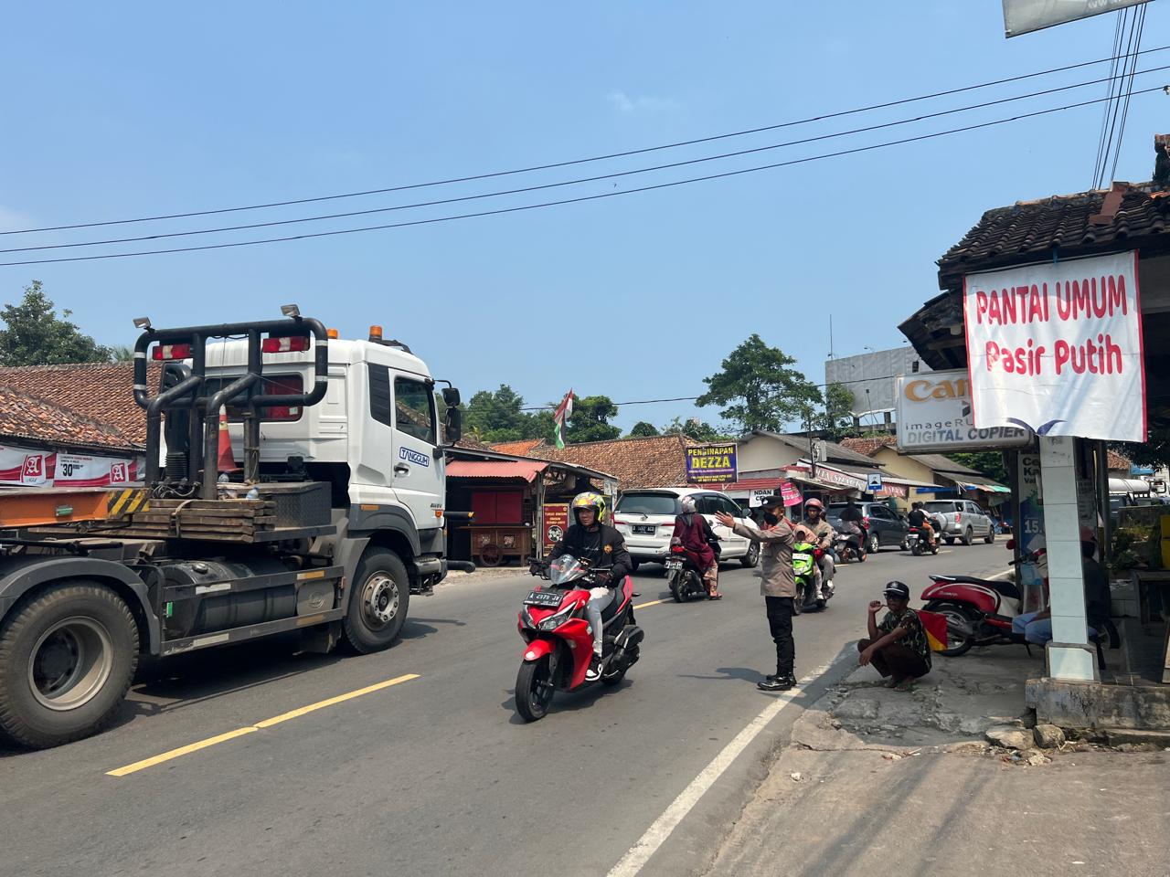 minggu pagi personil polres cilegon lakukan strong point jalur wisata