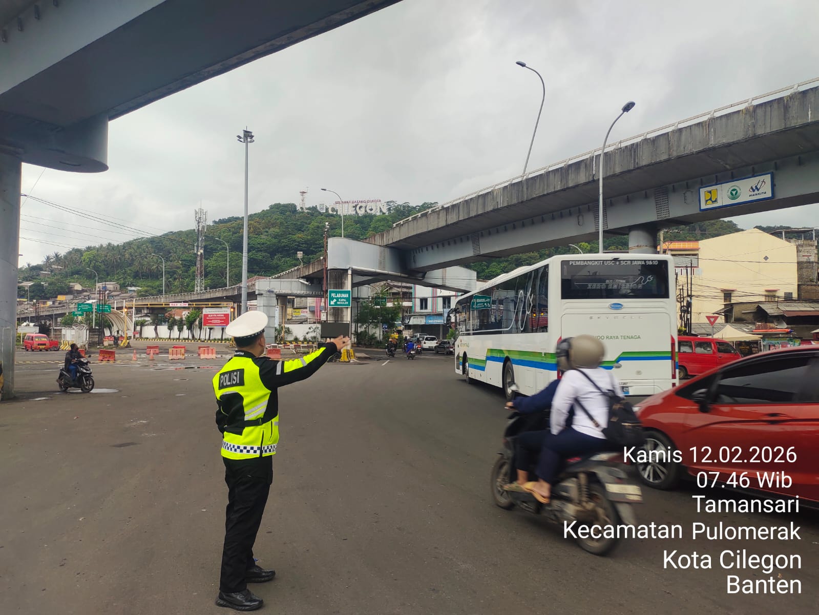 Pengaturan pagi hari ini melibatkan personil Polres Cilegon dari Satpamobvit, Satlantas, dan Polsek.