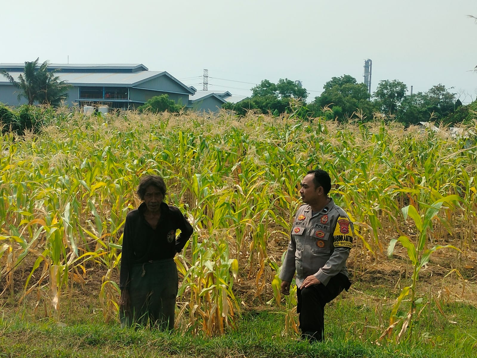 memantau lahan jagung pok tani sinarjaya kecamatan.puloampel Desa Banyuwangi oleh Bhabinkamtibmas Polsek Puloampel