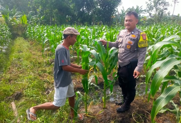 BHABINKAMTIBMAS POLSEK PURWAKARTA TURUN KE LAPANGAN, DAMPINGI WARGA DI KEBUN JAGUNG