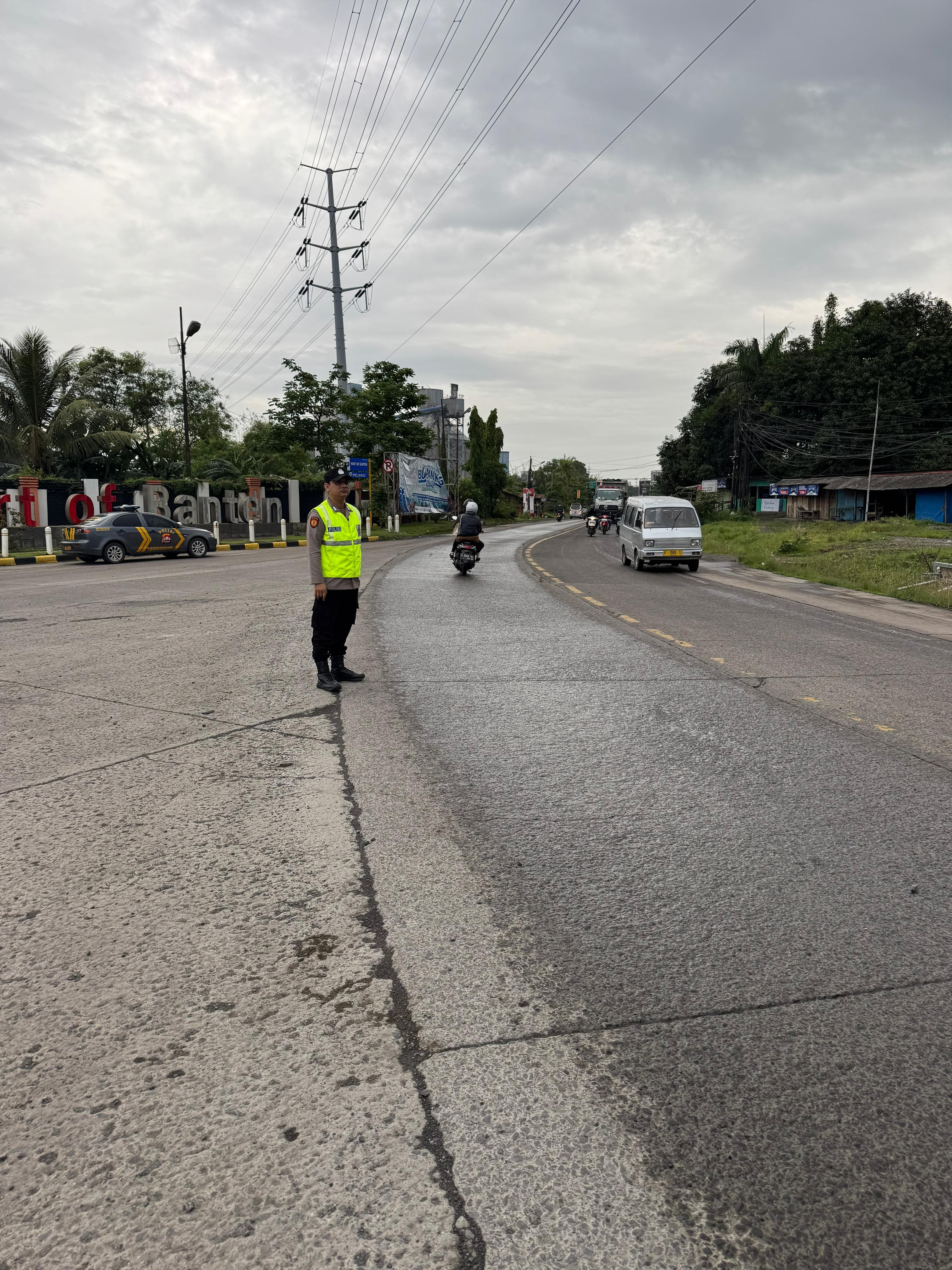 Kapolres Cilegon AKBP Martua Raja Taripar Laut Silitonga Melalui Kapolsek Kskp Banten Polres Cilegon AKP Fredo Leonard menyampaikan Laksanakan Pengamanan Sesuai plotinganya lakukan Pengaturan Supaya Arus Lalu Lintas tetap Berjalan lancar dan Pastikan tidak ada hambatan.
